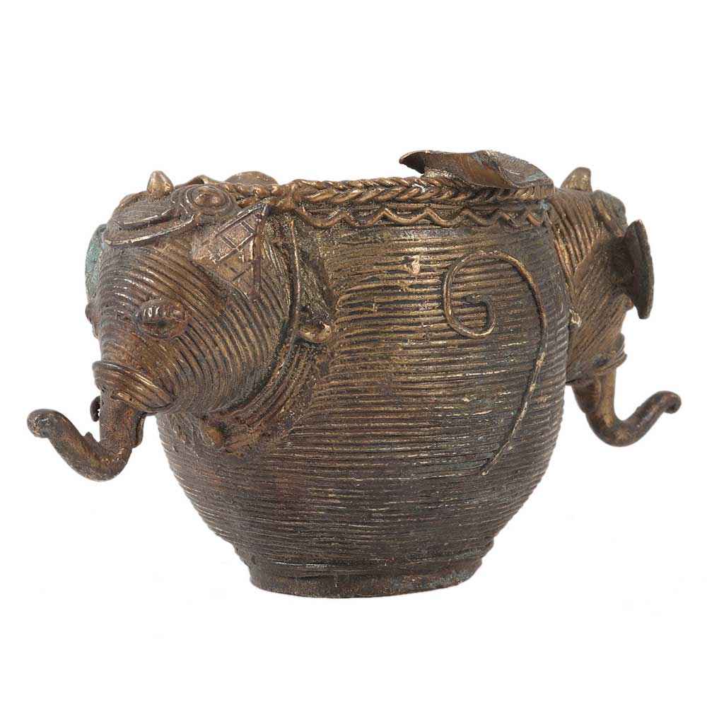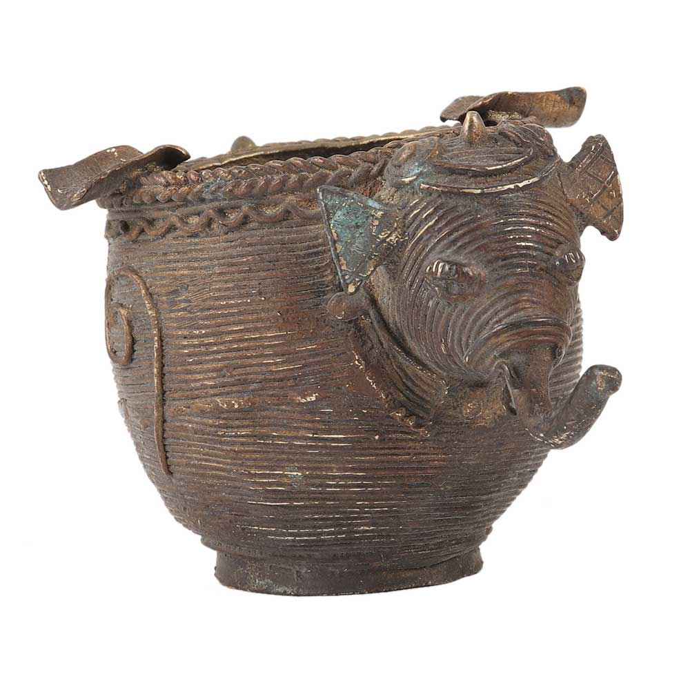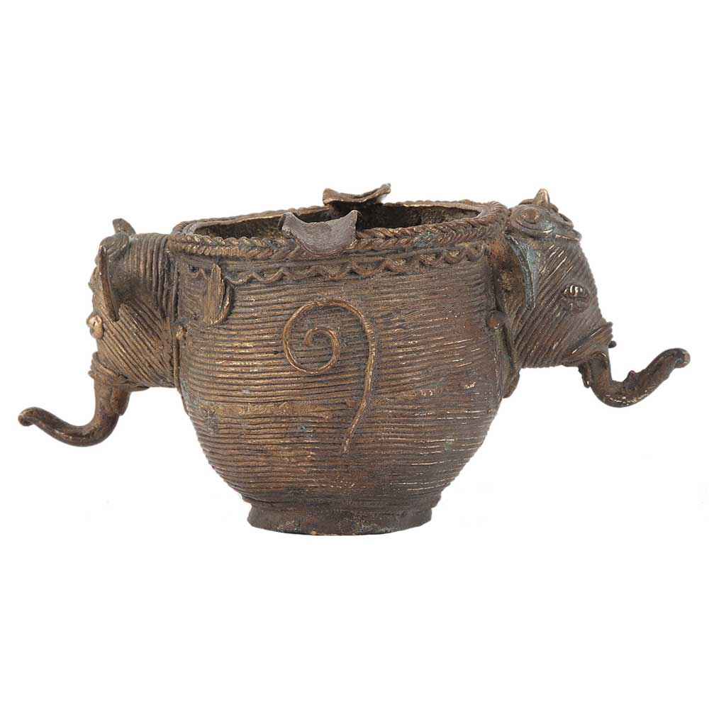 • Brass Elephant Face Ashtray With Detailed Carvings