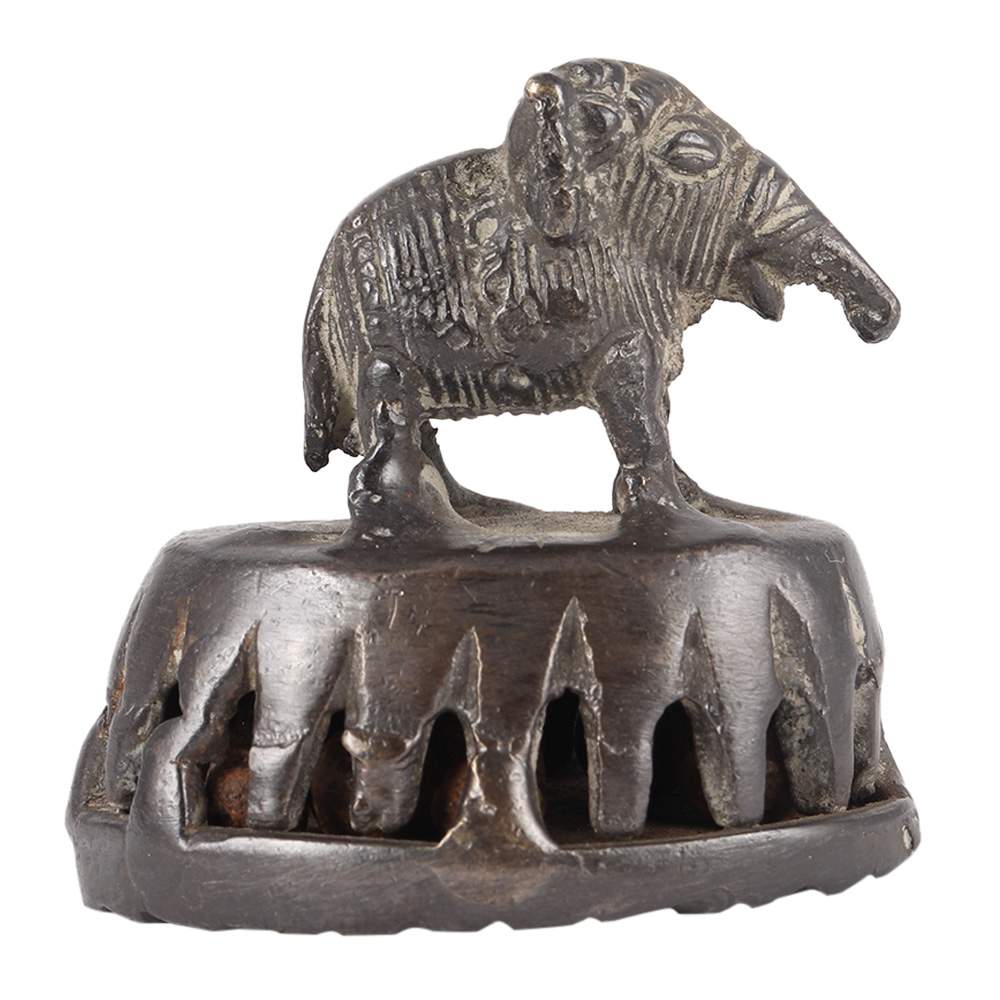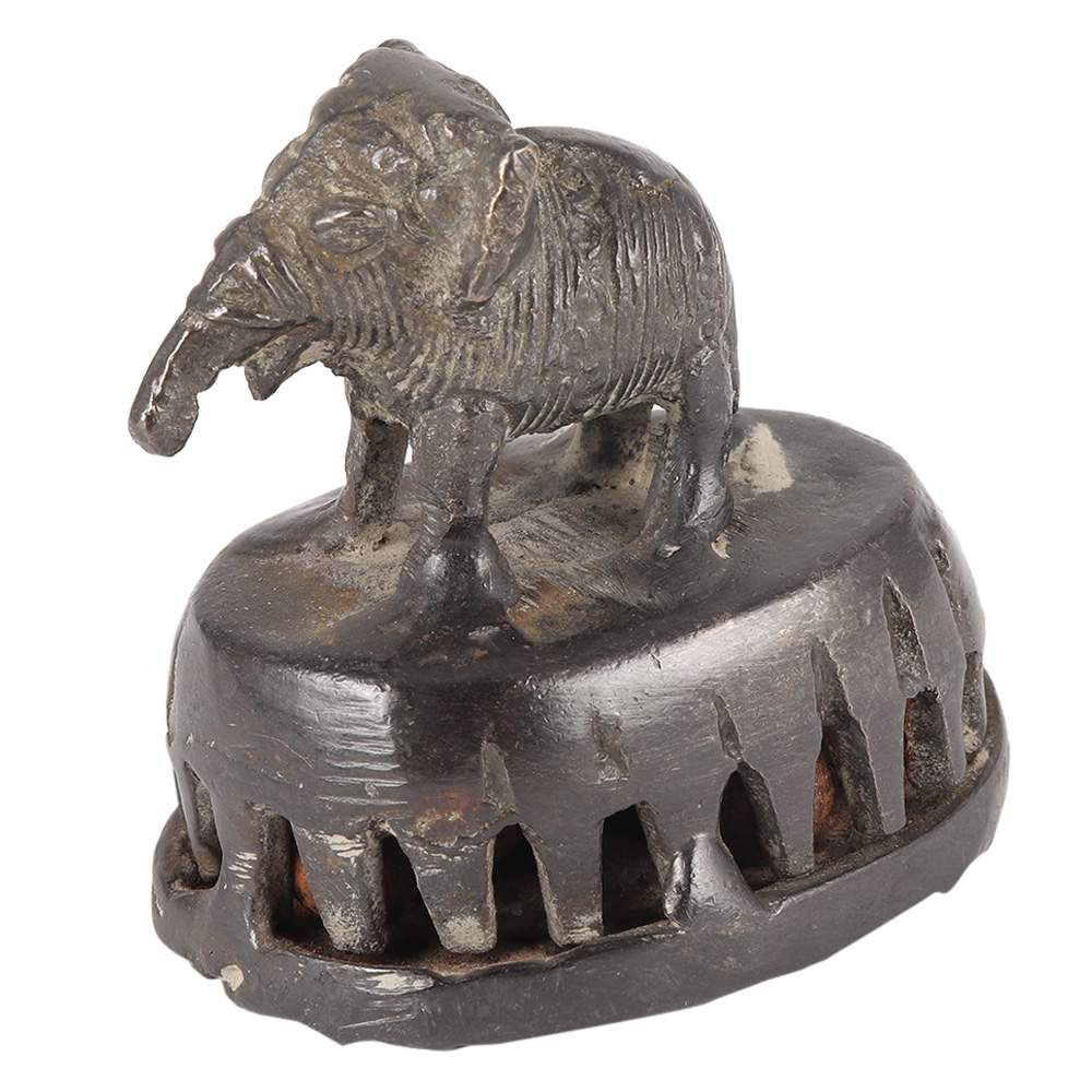 • Brass Elephant Statue Atop Foot Scrubber In Dark Finish