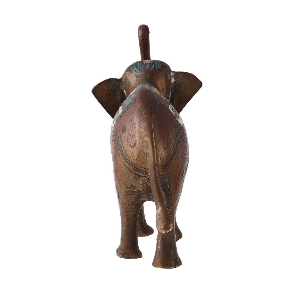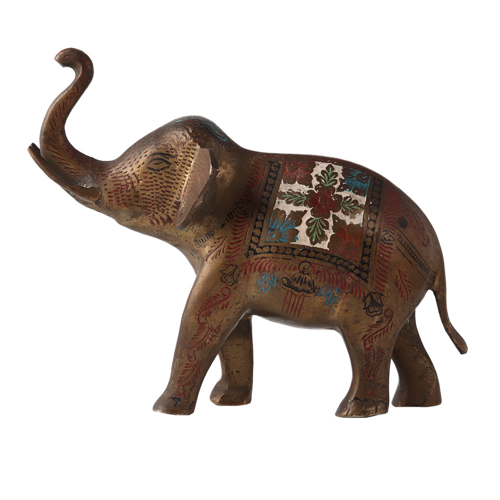 This pure Brass metal royal Elephant is an epitome of skilled craftsmanship, with beautiful craftsmanship on their back and trunk. It can be placed on table tops to improve the look of your living space. The carving depicts the royal elephants in their full glory and greatness. The carving will look lovely in your home. Our Brass Elephant figurine has a high quality shiny luster with an intricate design that catches the eye at first glance. This intricately designed decorative piece can be used in any room of the house or office. Our Brass Elephant figurine has a clear smooth texture with fine brass details handcrafted by skilled Indian artists.