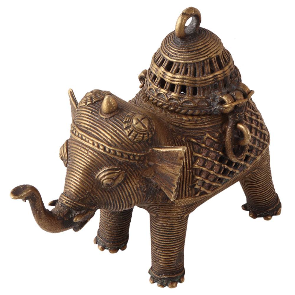Brass Elephant Statue with Storage in Tribal Art