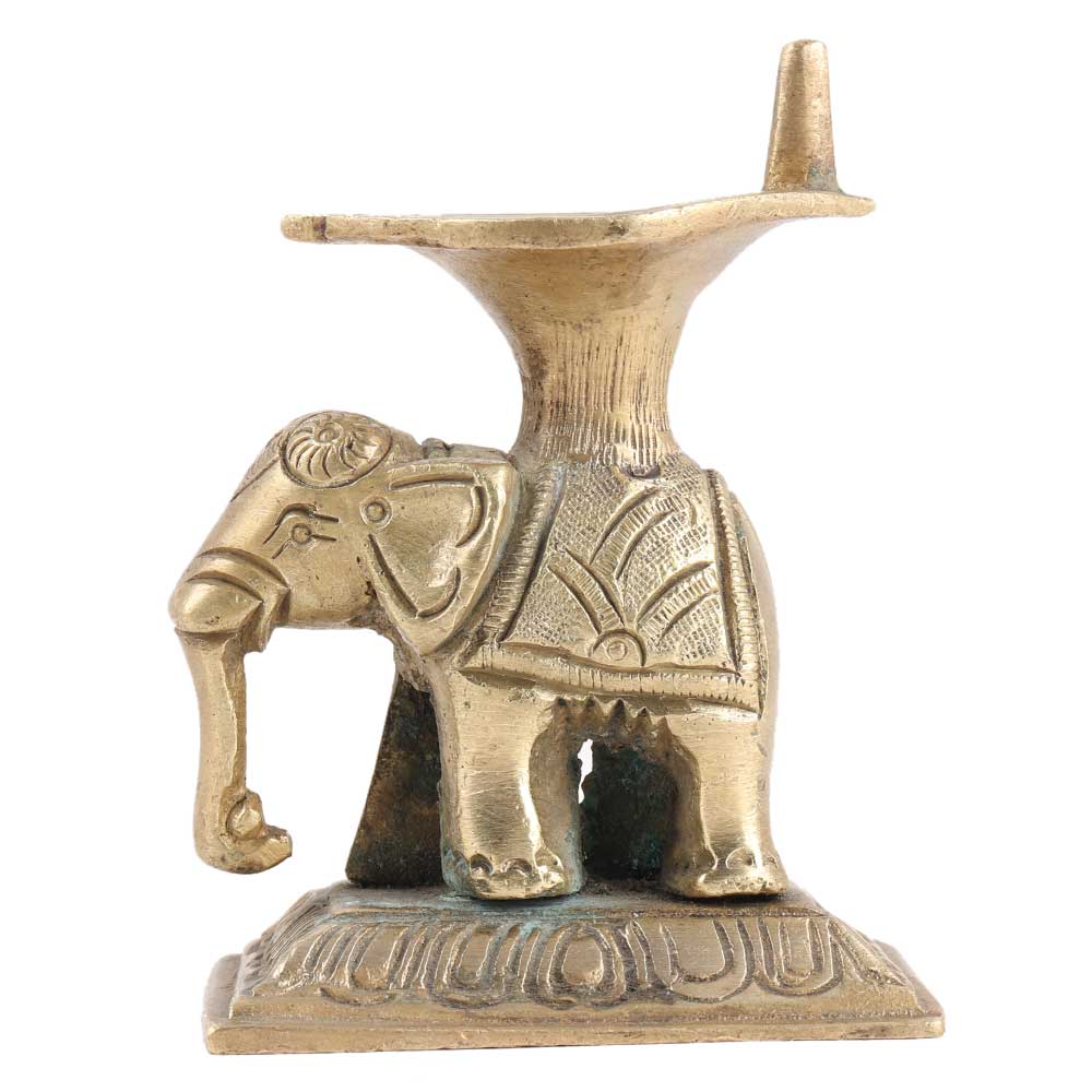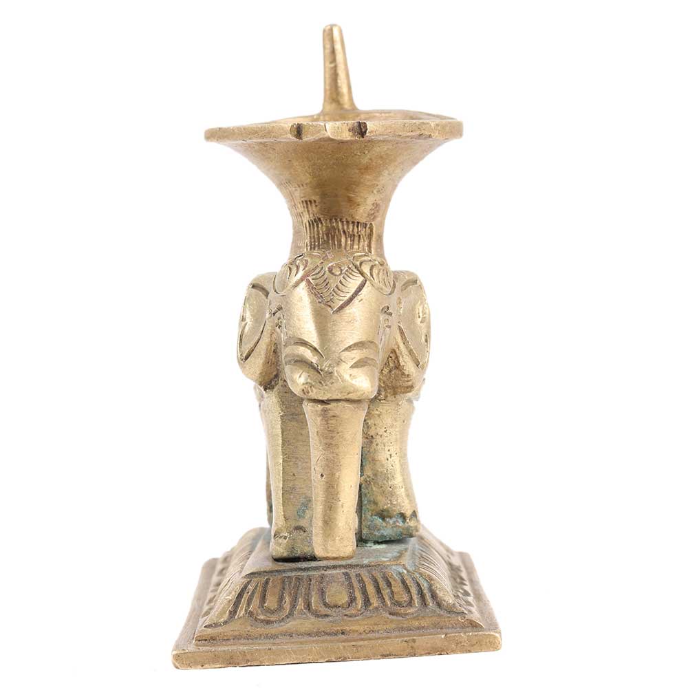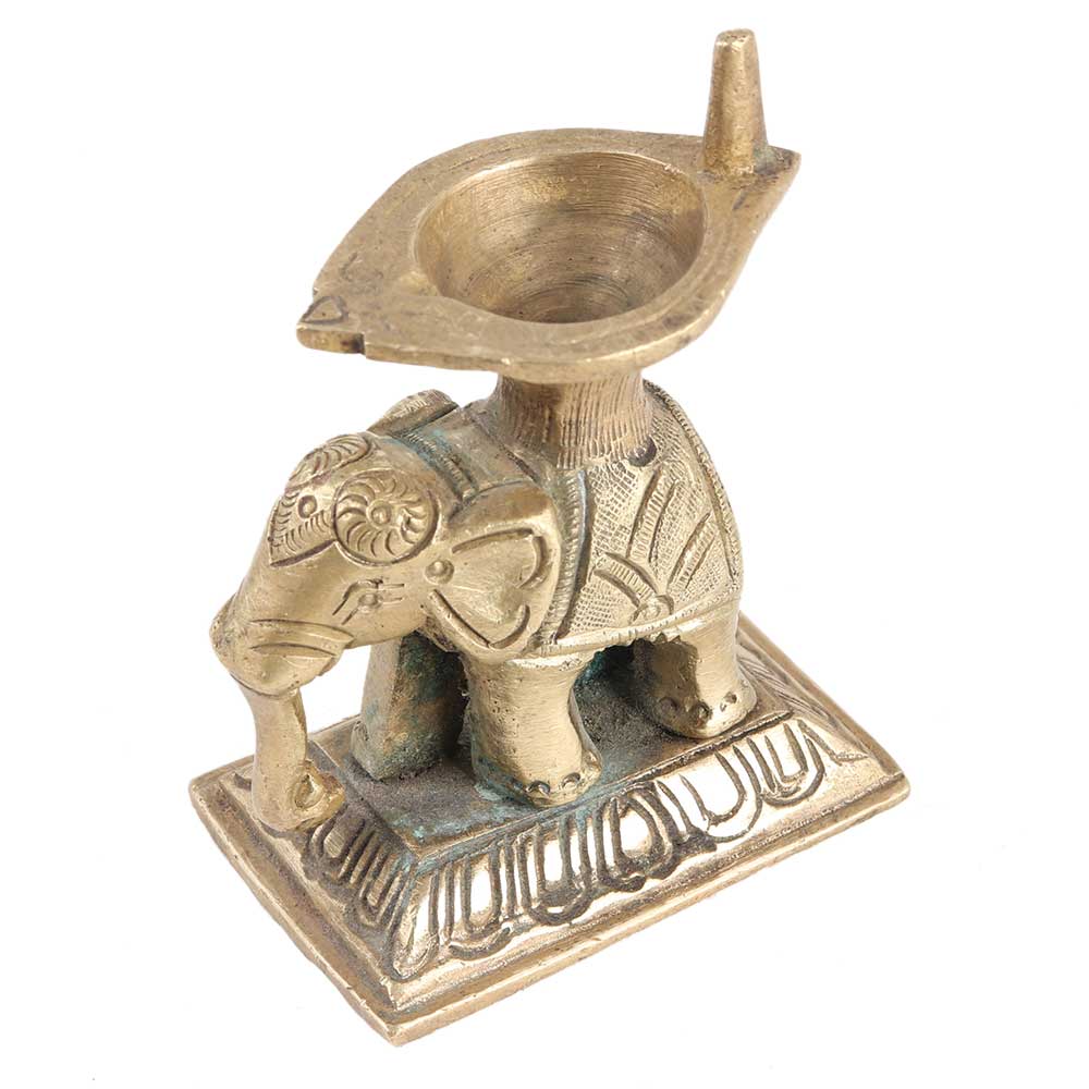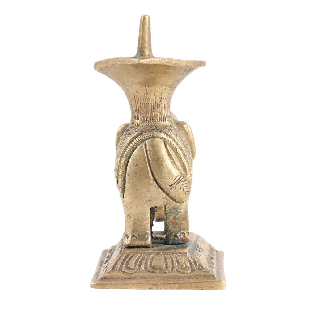 A gorgeously carved diya made of pure brass, with an elephant motif. Simple to grasp. Fine craftsmanship. A must-have for any Hindu pooja. Yanai translates to "elephant." Presenting elephant-shaped lamps (Yanai vilakku) to their daughters for their prosperity and well-being is a South Indian custom.