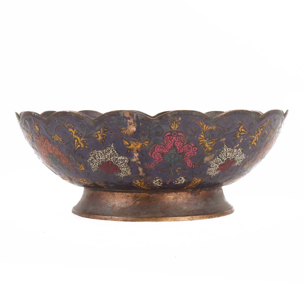 • Brass Enamel Bowl With Scalloped Edge