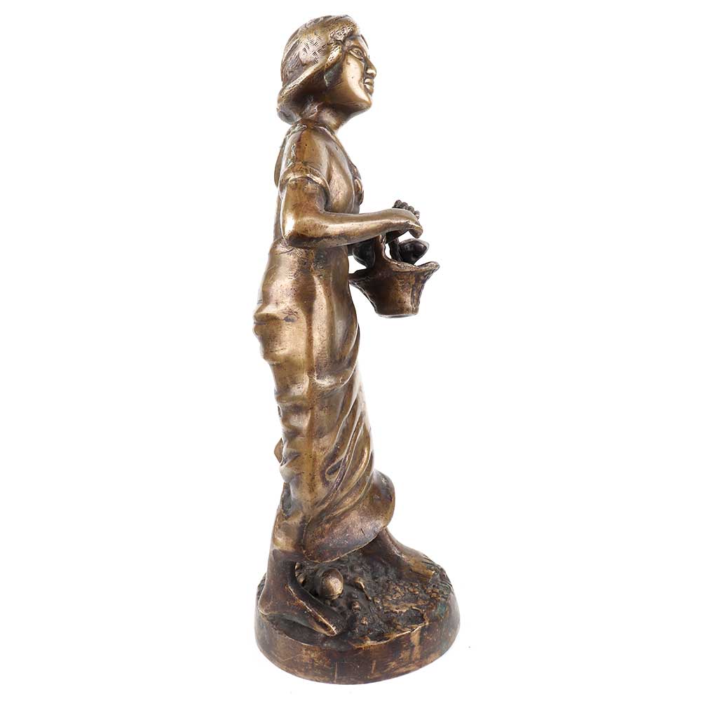 • Brass English Statue Young Girl With Flower Basket