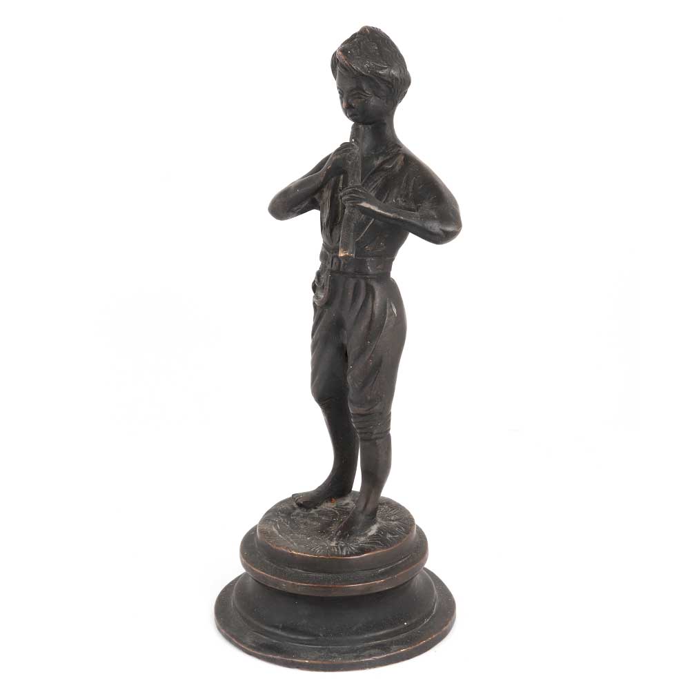 Brass English village boy statue playing flute can be�used as�an ornamental�Item to Be Displayed�within the lining room�or�typically office, hotel and school reception desk.�Used as�a present�for Family and Friends.