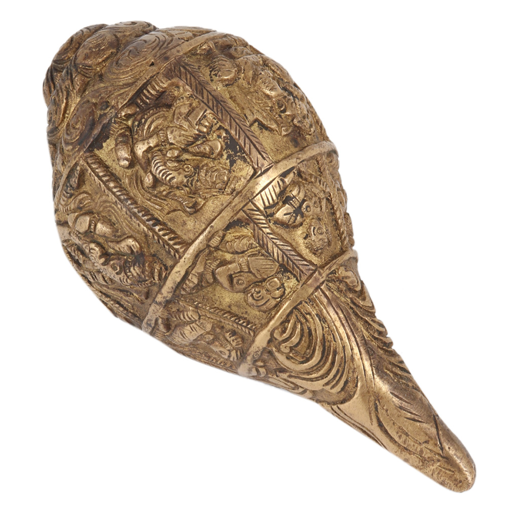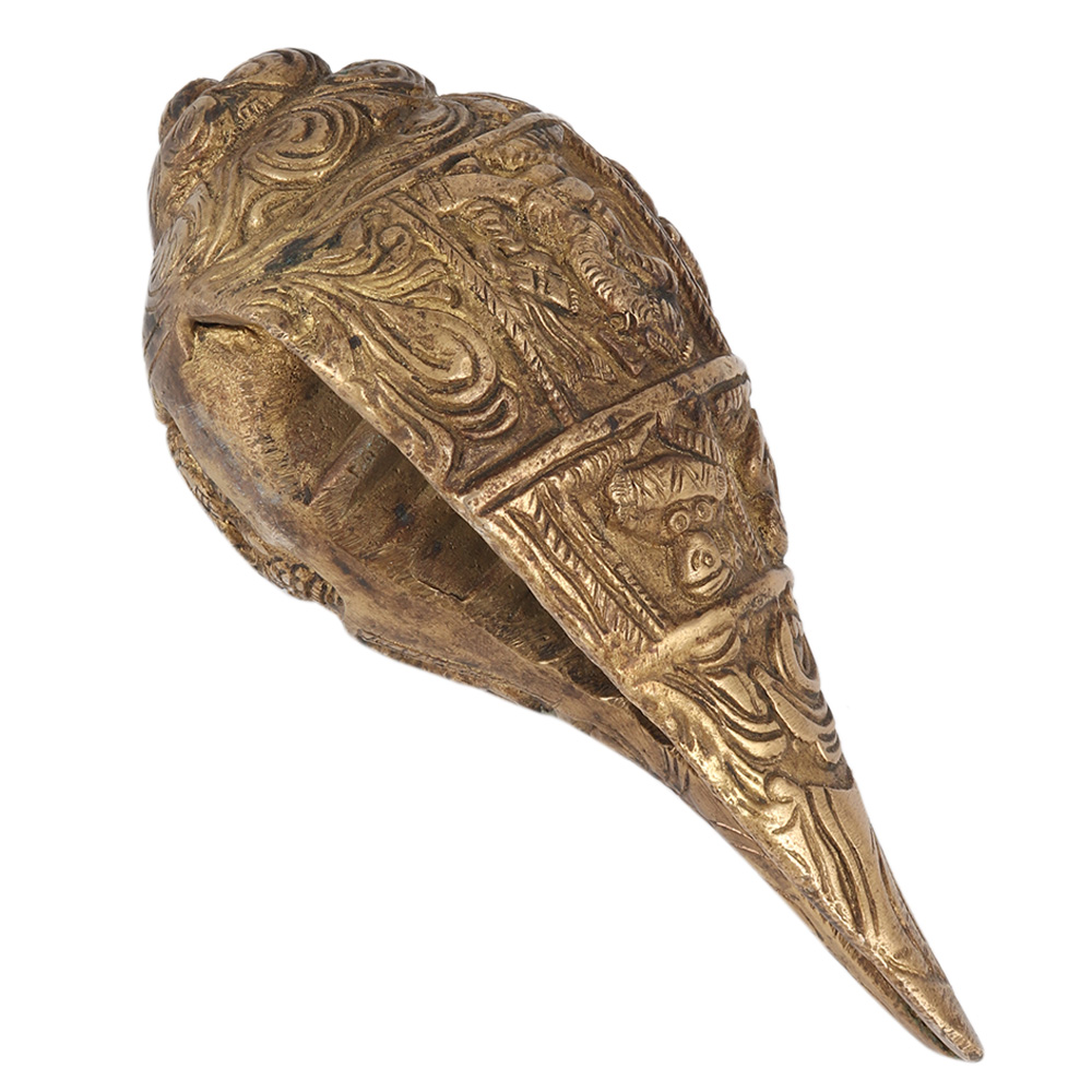 • Brass Engraved Conch Shell Decor Ornament In Golden Finish