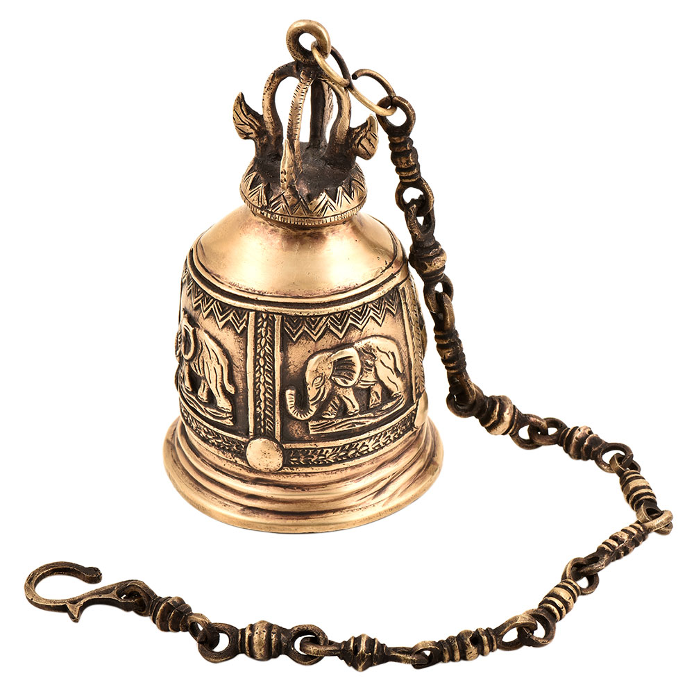 Brass Engraved Elephant Mandir Hanging Bell