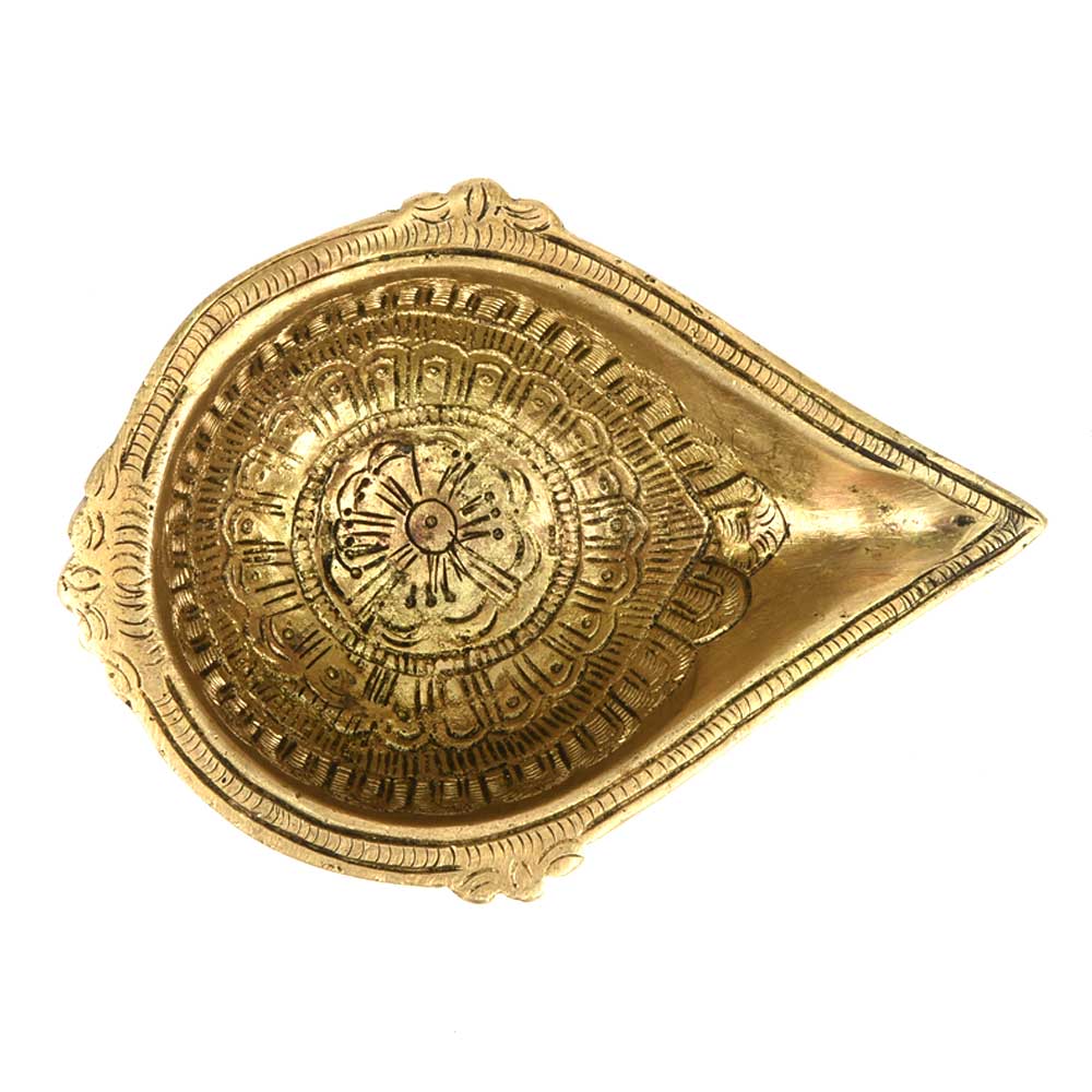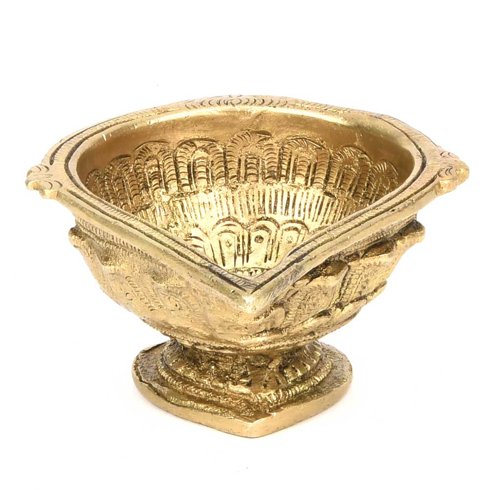 Brass Engraved Handmade Oil Lamp, Indian Diya