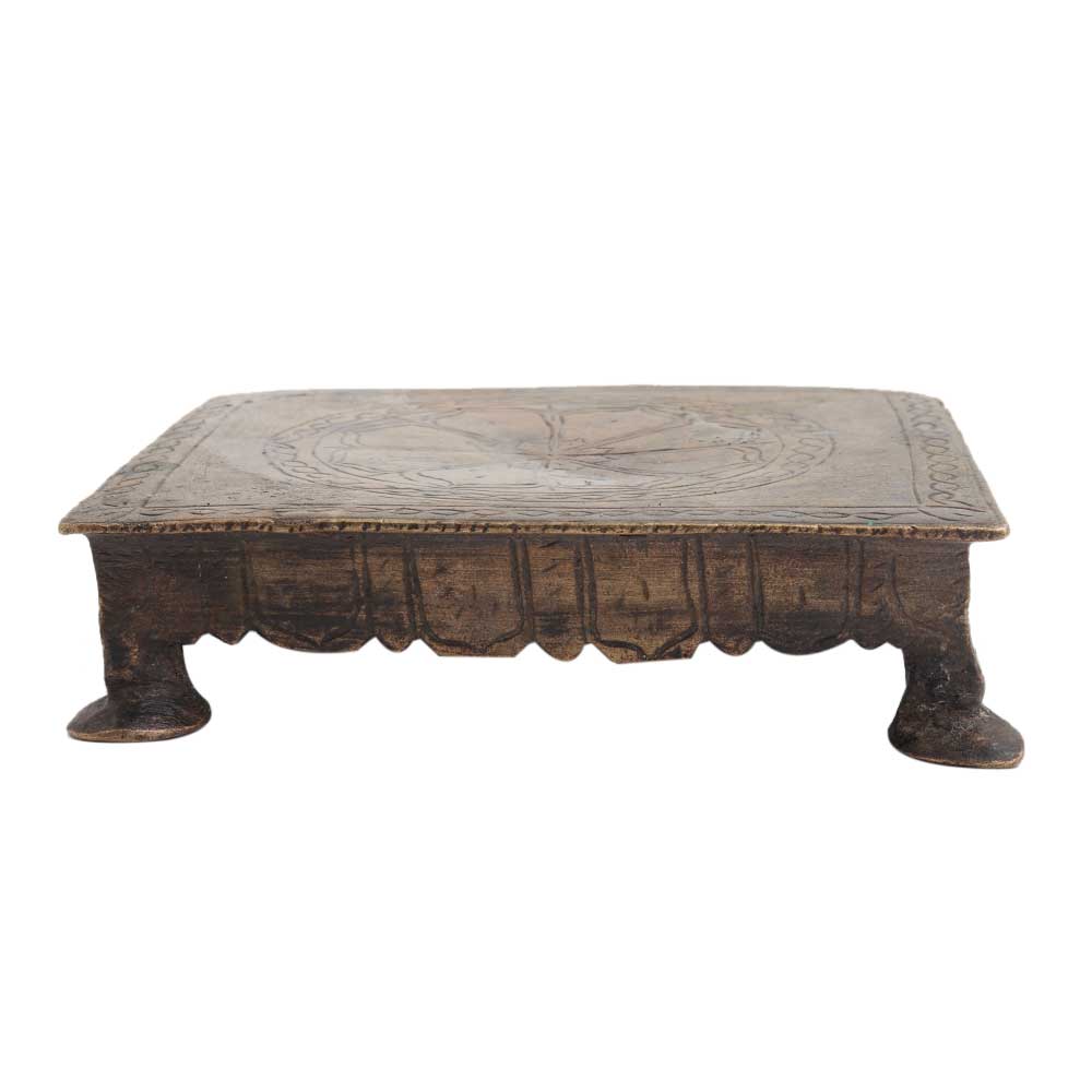 Decorate your empty corners with this handmade brass low height table with engraved floral design. An ideal gift for a housewarming, Birthday or anniversary parties, puja decoration , place your idols on this table for worship, Stage decoration, Diwali and house warming gift.
