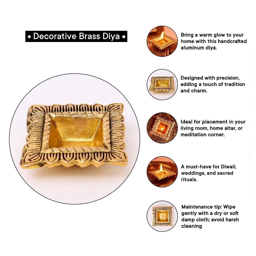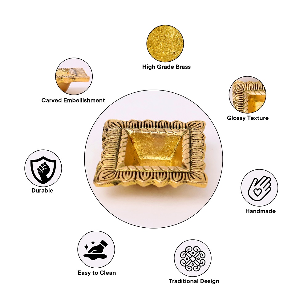 Bring home timeless tradition with this Brass Engraved Square Oil Lamp Diya, beautifully designed with detailed engravings that enhance its spiritual charm. Made from solid brass with a radiant golden finish, this diya combines functionality with cultural artistry. Compact yet elegant, it is perfect for mandirs, puja thalis, and festive rituals, spreading light and blessings in every corner.