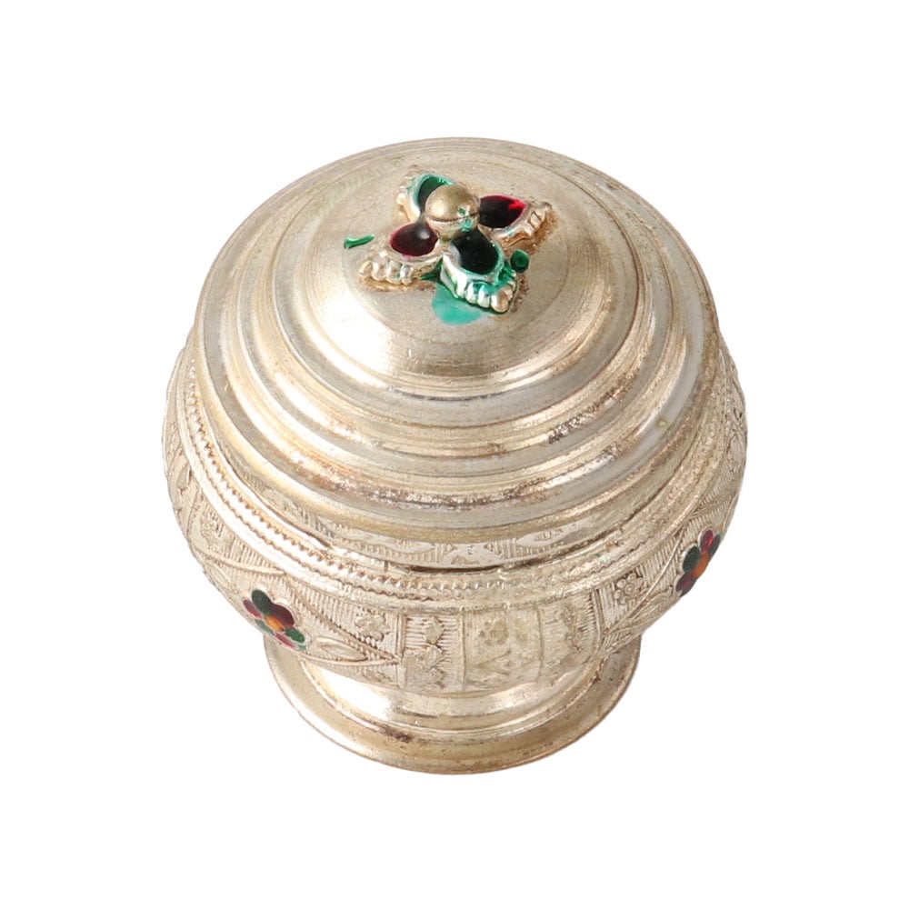 • Brass Fancy Design Kum Kum Box  in Silver Finish