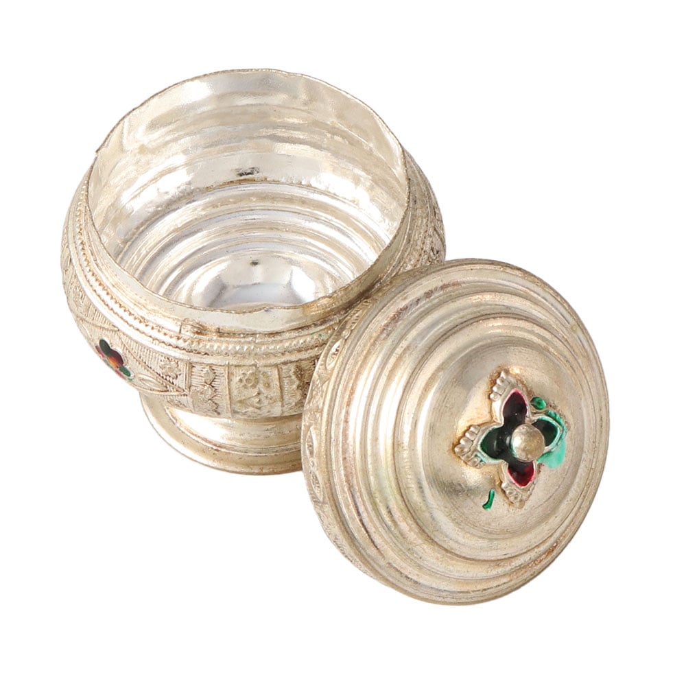 Brass Fancy Design Kum Kum Box in Silver Finish