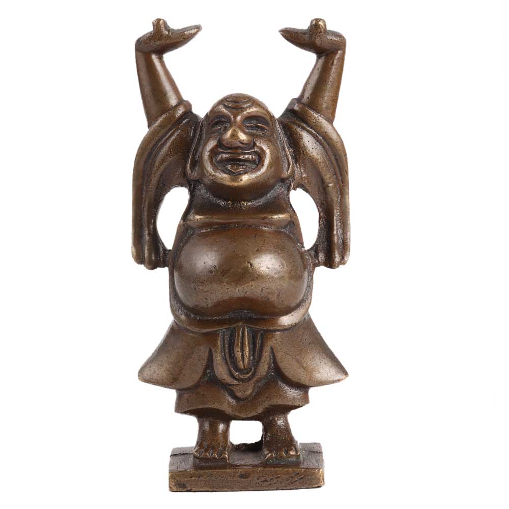 One of the most auspicious Gods of wealth is the laughing Buddha. Handcrafted by Indian artisans, this brass Buddha statue is sure to impress your guests. With this Brass Laughing Buddha Showpiece from Two Moustaches, you can bring wealth, prosperity, and good fortune into your home. Place the showpiece on your office desk or a table in your living room to inspire you to achieve your goals.