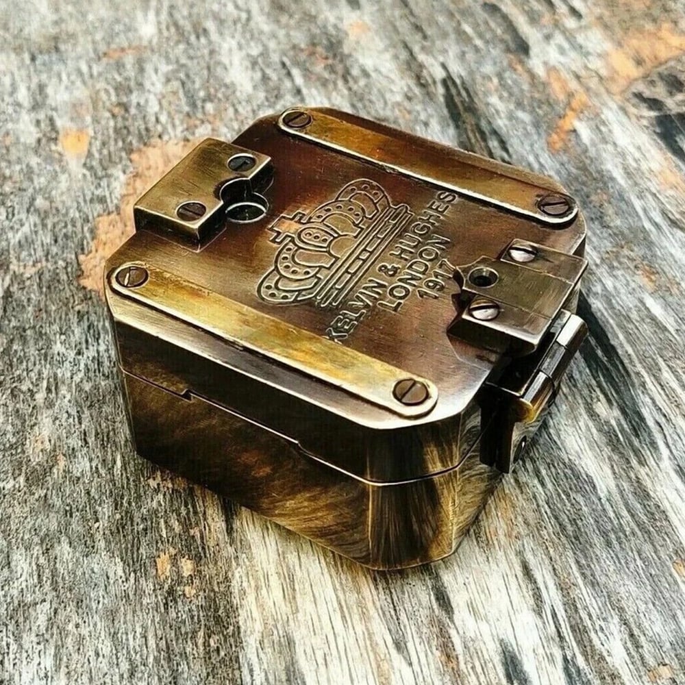This brass field compass reflects an era when navigation relied on skill, precision, and well-crafted instruments. Shaped from brass and finished naturally over time, it represents enduring craftsmanship and exploration heritage. Each piece carries subtle variations, ensuring every compass is uniquely individual.