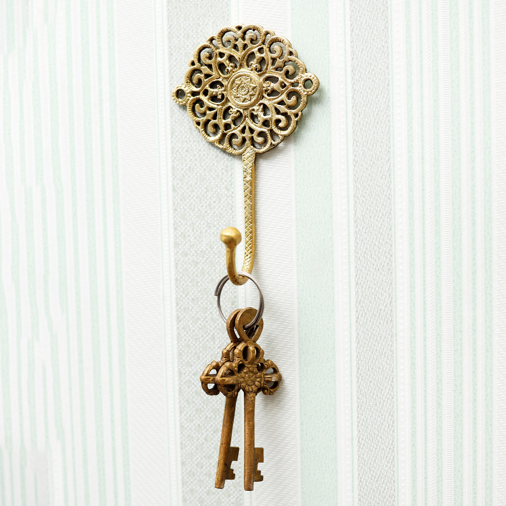 The Filigree cutwork design brass wall hook is a unique and stylish wall hook that is made of high-quality brass. The hook features a cutwork design that adds a touch of elegance and sophistication to any room it is placed in. The brass material is durable and long-lasting, making it perfect for use in high-traffic areas. The hook is easy to install and can be used to hang a variety of items, such as coats, hats, bags, and more. The sleek and modern design of the Filigree cutwork design brass wall hook makes it a great addition to any home decor. It is perfect for use in entryways, hallways, bedrooms, and bathrooms. Overall, it is a functional and stylish wall hook that will add a touch of elegance to any space.