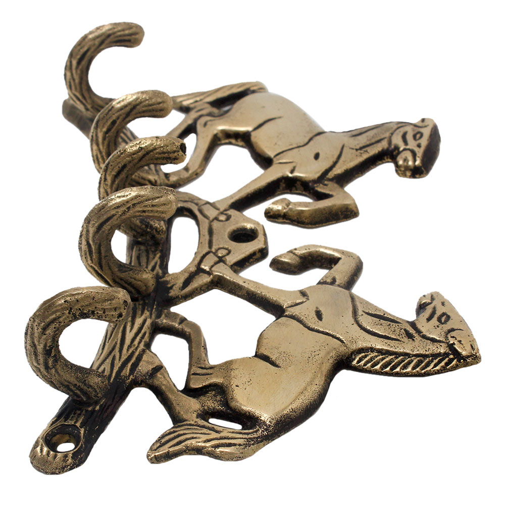 The Brass Five Hooks Holder and Hanger with Two Standing Horses is a finely crafted wall hook that celebrates the strength and spirit of horses while offering a practical solution for daily organization. Featuring two proudly standing horses atop a solid brass base with five strong pegs, this hanger captures both motion and elegance. It’s more than a storage piece—it’s an equestrian-inspired decor element that adds rustic charm and character to any room. Handcast in solid brass, it combines functional craftsmanship with symbolic beauty.