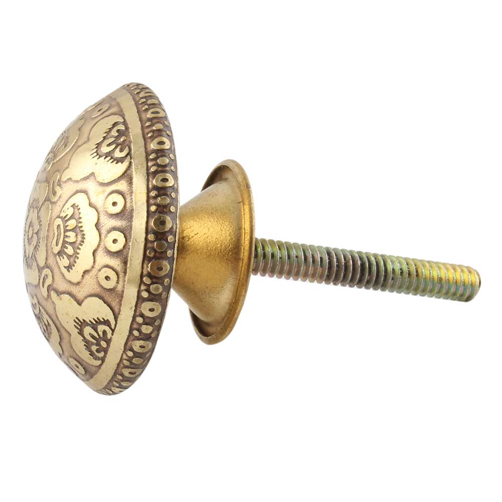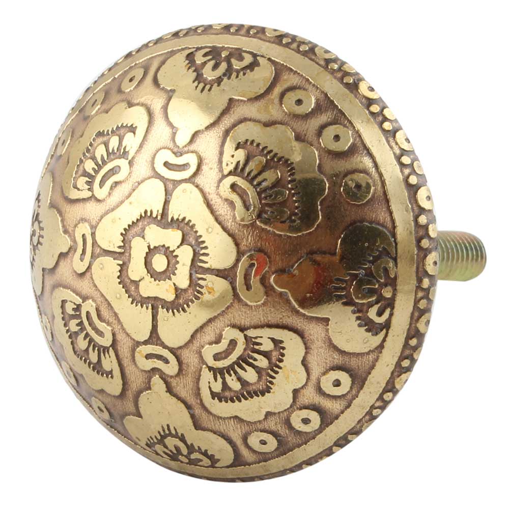 Made from high-quality brass, this knob features a stunning floral pattern that radiates elegance. The polished finish and intricate engraving create a captivating visual appeal, making it a perfect addition to any room in your home.