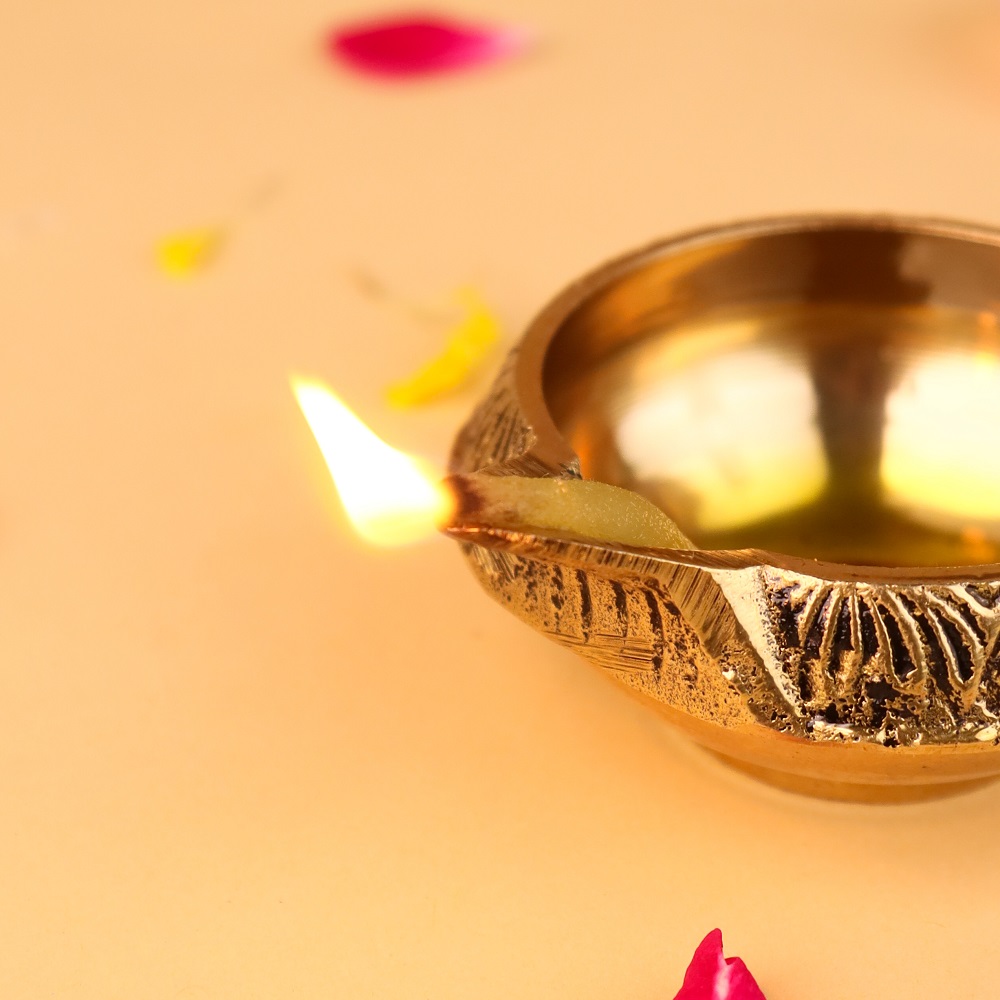 Indianshelf.com for bulk/wholesale orders.Indianshelf.us for personal purchases.Celebrate Diwali and sacred rituals with the Brass Flower Design Oil Lamp, a diya inspired by the purity and symbolism of flowers. Its golden brass finish radiates warmth, while the elegant floral shape represents devotion, prosperity, and new beginnings. Perfect for puja rooms, rangoli decorations, and auspicious gifting, this diya beautifully blends functionality with artistry.