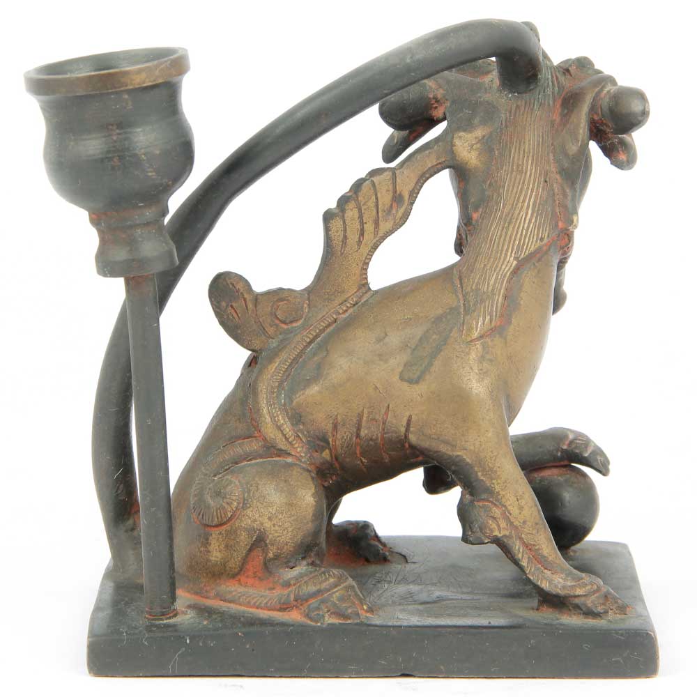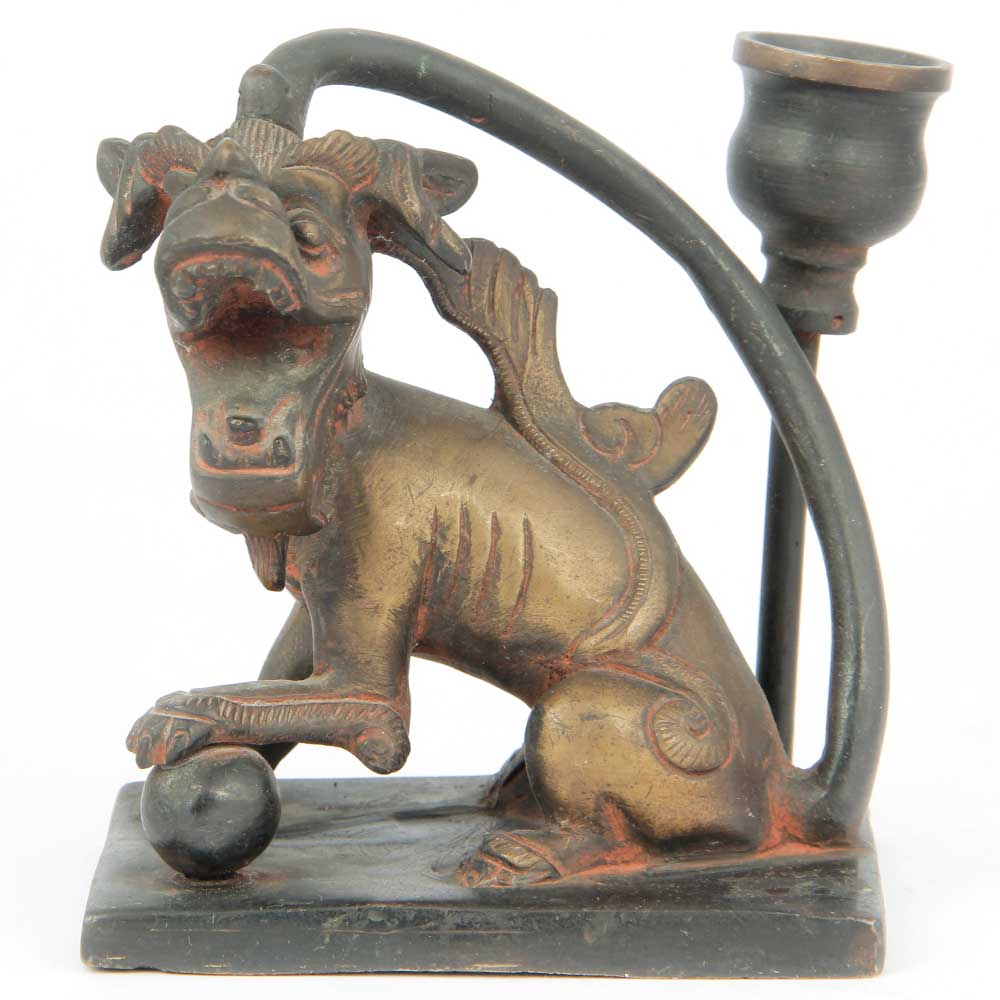 • Brass Foo Dog Candle Holder