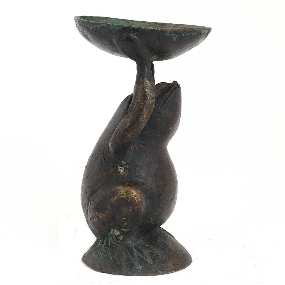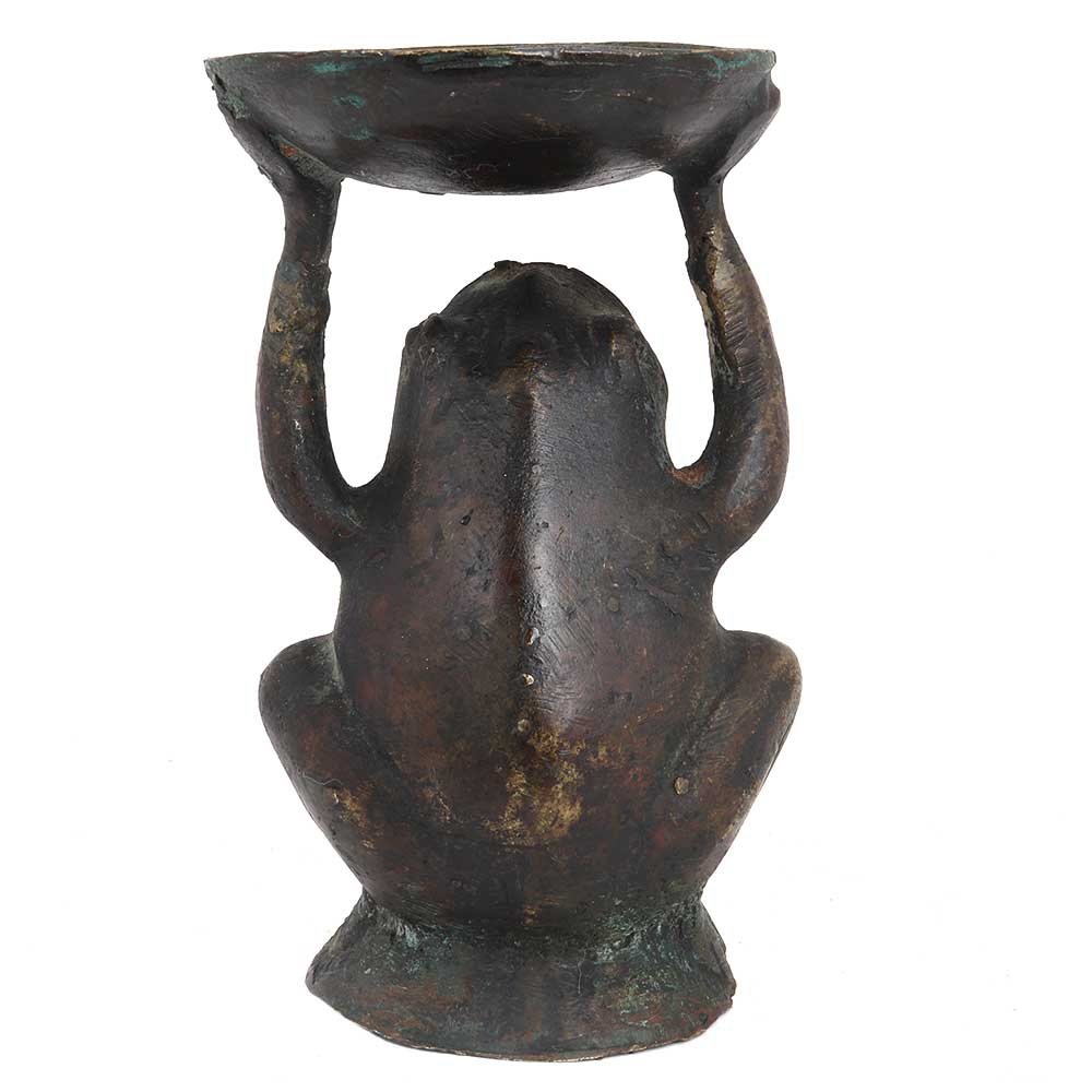 Place these lovely Brass Frog Candle Holder on a credenza, bookshelf, mantel, co coffee or dining table. Diwali gift. Wedding gift, Christmas decoration , new year gift .Ideal gifting option. It comes with an age old patina.