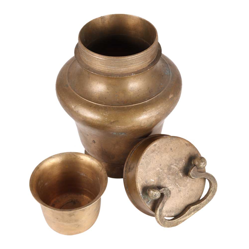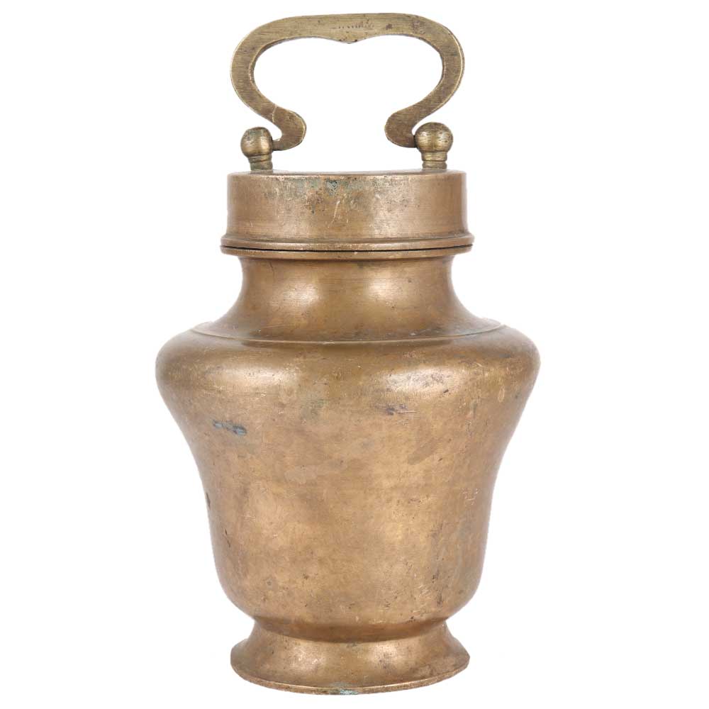 This  solid kamandal or gangajali pot has a handle for easy picking up. The handmade  Kamandal pot  is constructed of brass and has a lovely finish. This Ganga Jali pot or Kamandal  is used to hold Gangajal, Water, Grain, or other sacred liquids. It can do prayers and rituals on a regular basis.