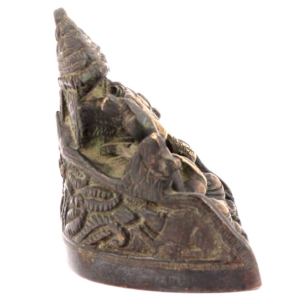 Ganesh is Seated on Chowki with Both Legs Tucked Underneath Him. He Holds a Noose, Elephant Goad, His Broken Tusk and a Mango. Ganesha Trunk is to His Left. In Sculpture the Position of Lord Ganesha Trunk has a Symbolic Meaning. If the Trunk Turns to the Ganesha Left, That is the Direction for Success in the World. It is a Position Associated with Grihastas, or Householders.