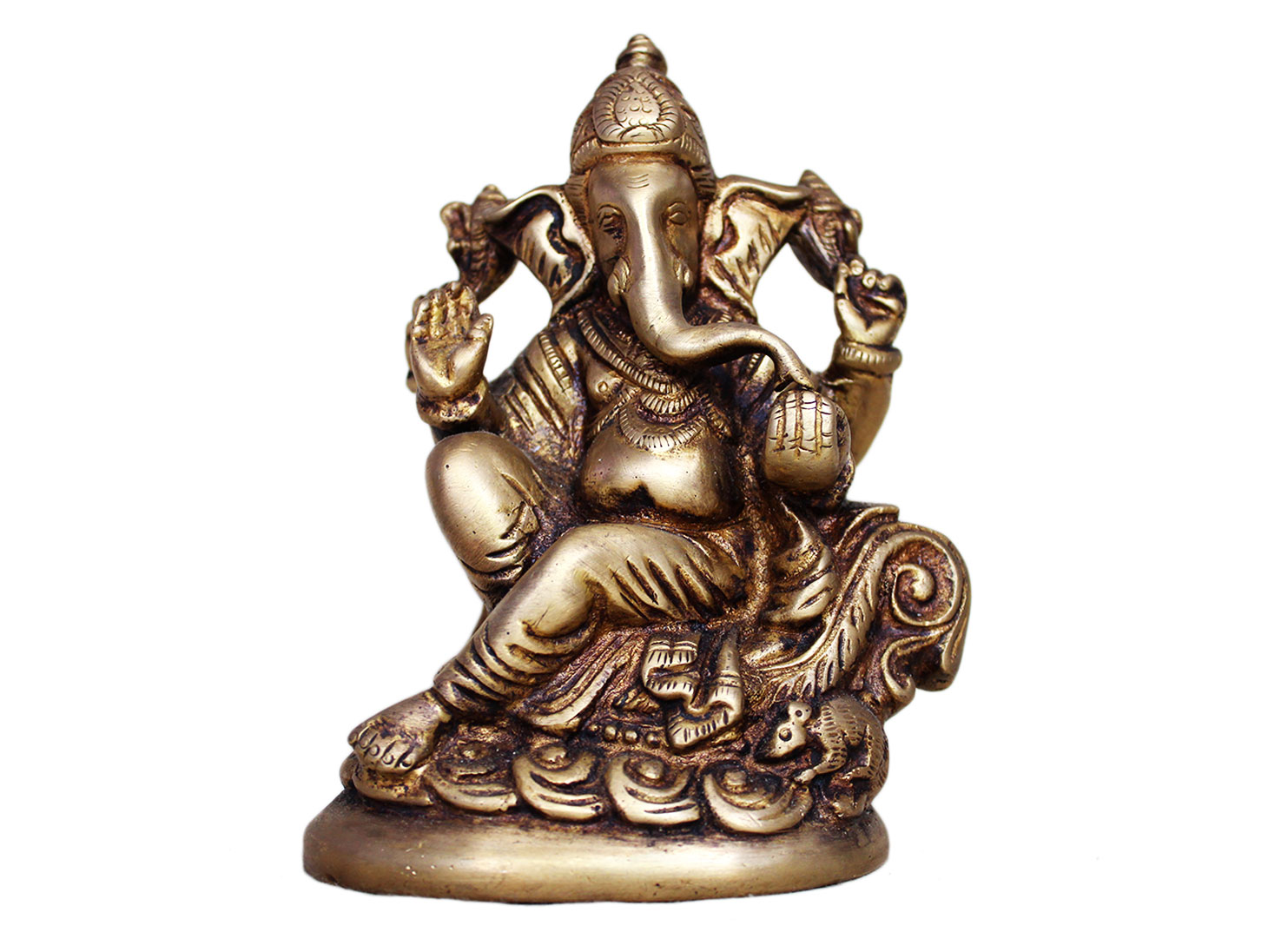 . Brass Ganesha. Finely Done to Get That Peaceful Expression on the Face. Brings Instant Peace At a Moment Glance. Fills the Atmosphere with Peace and Positive Energy. Handmade. It is More Than a Statement Piece.