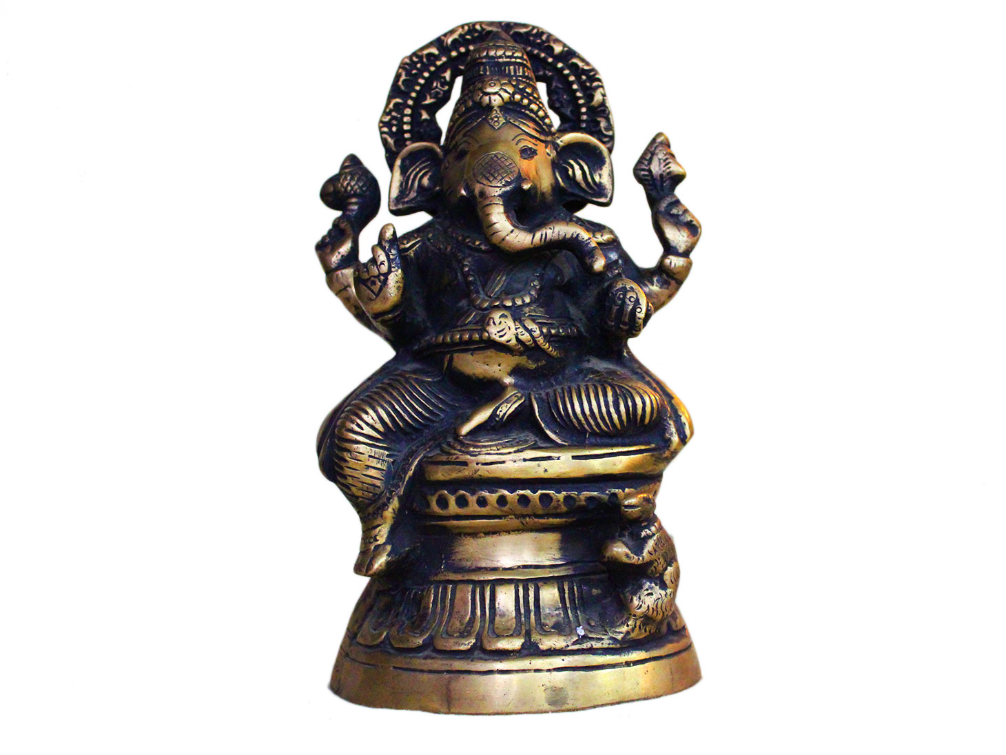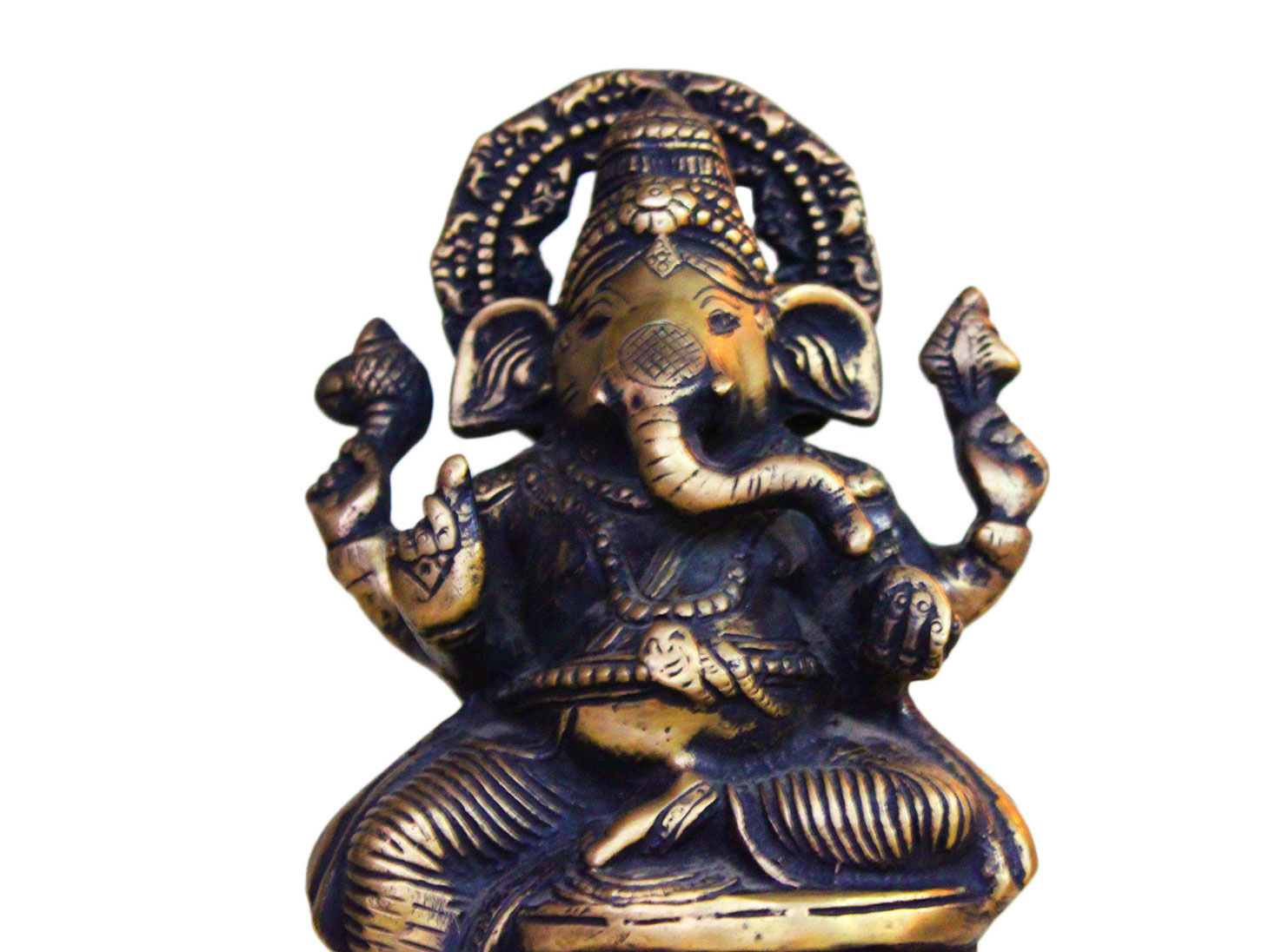 . Brass Ganesha. Finely Done to Get That Peaceful Expression on the Face. Brings Instant Peace At a Moment Glance. Fills the Atmosphere with Peace and Positive Energy. Handmade. It is More Than a Statement Piece.