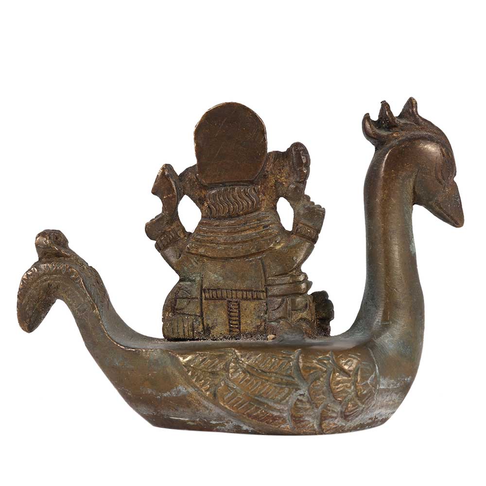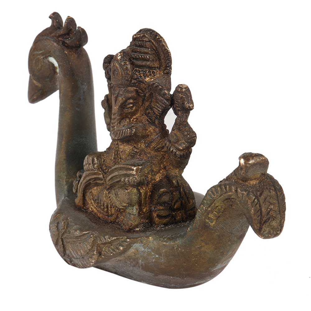 Brass Ganesha Statue On Peacock Boat Writing A book