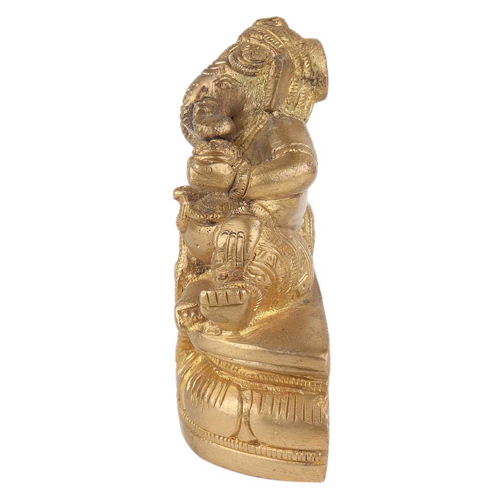 • Brass Ganesha Statue Sitting With Modak In Hand