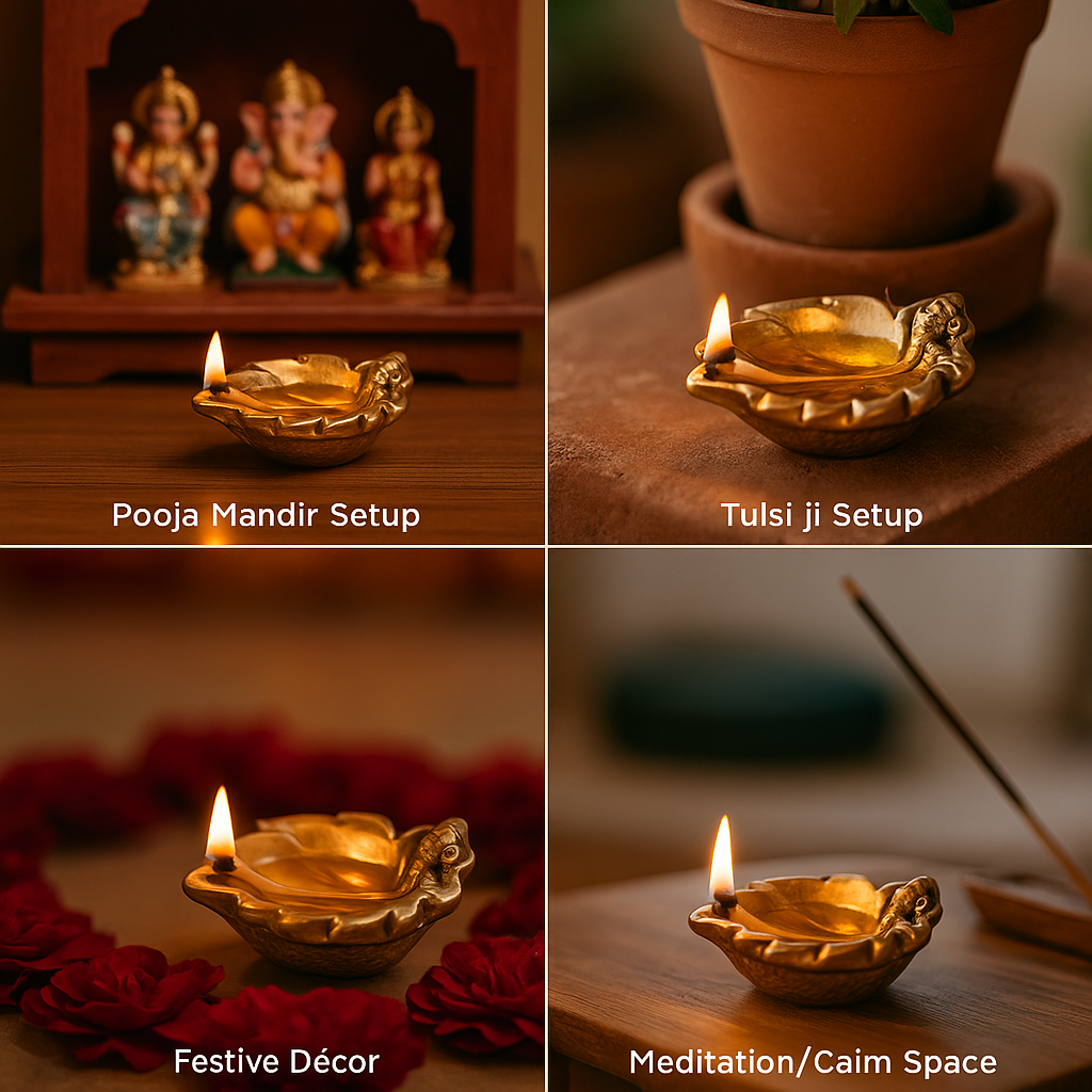 Brass Ganpati And Leaf Oil Lamp Diya is an ideal worship lamp for deity and idols, beautiful gift for Diwali, house warming and other Occasions and Ceremonies, an ideal showpiece for your home interiors. Gift for your near and dear ones.