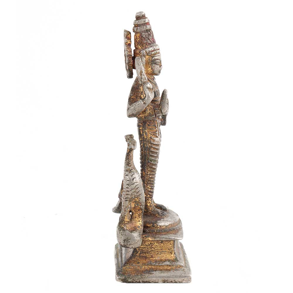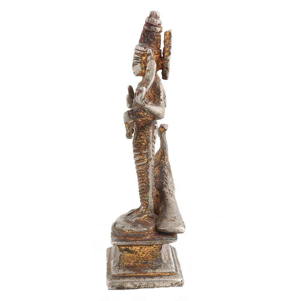 • Brass God Karthikeya Statue Beautiful Peacock In Nickel Finish