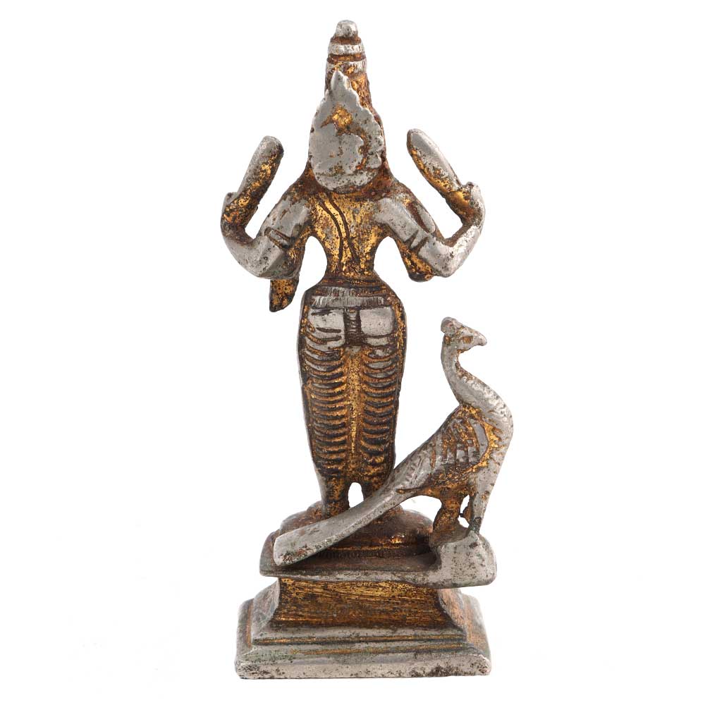 Brass God Karthikeya Statue Beautiful Peacock In Nickel Finish