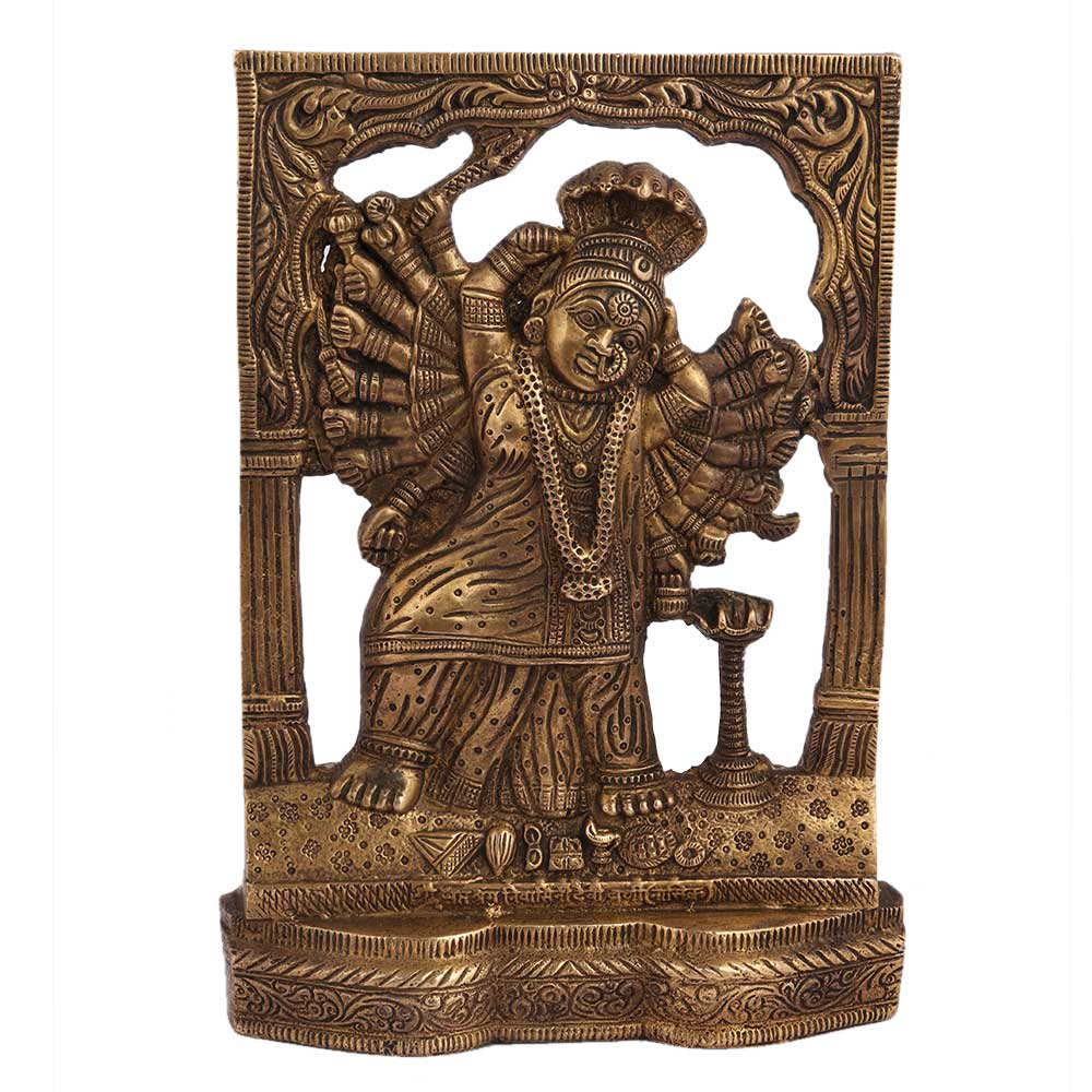 Brass Goddess Laxmi Statue 18 Hands Cobra Head Decorative Prabhavali