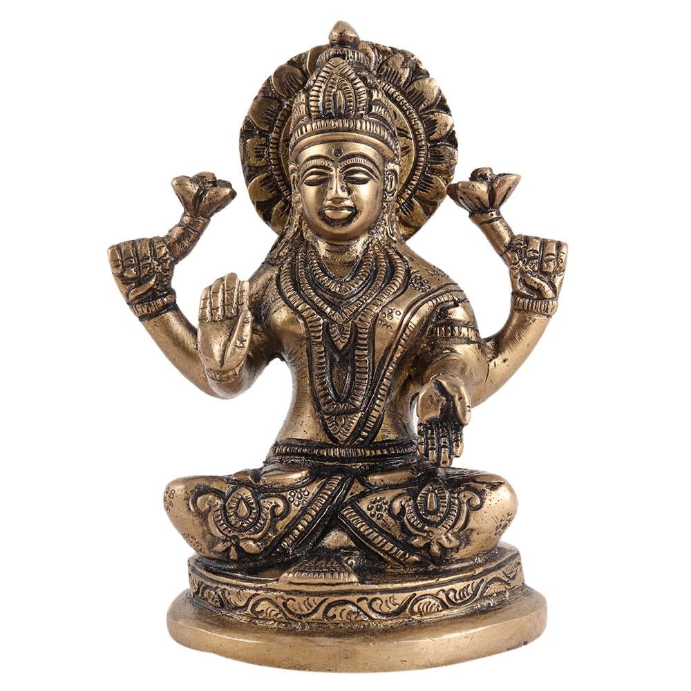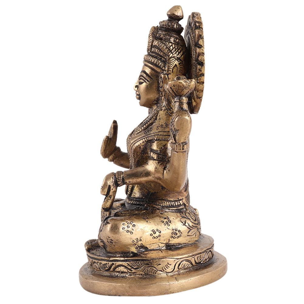 Brass Goddess Laxmi Statue Sitting In Blessing Pose
