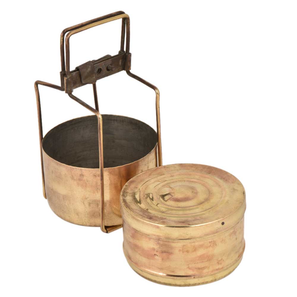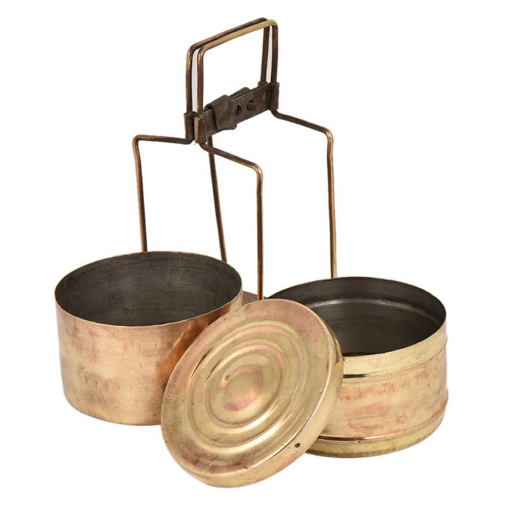 Brass Golden Tiffin Box Two Container Golden Color With Brass Strap Frame