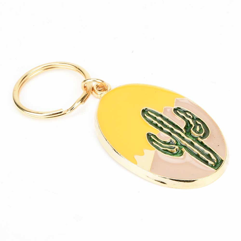 • Brass Green Cactus In Spherical Shaped Yellow Pale Pink Key Chain
