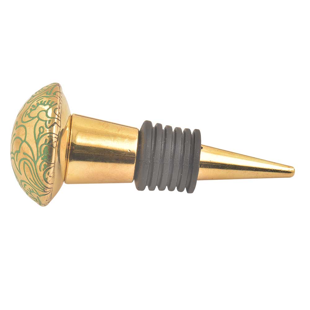 Brass Green Floral Wine Stopper
