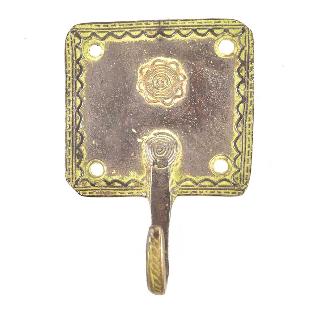 Brass Green Squared Floral Design Single Wall Hooks