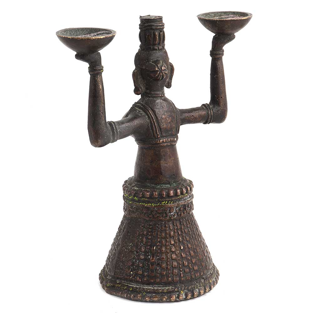 • Brass Gujarat Tribal Women Holding Two Bowls Candle Holder