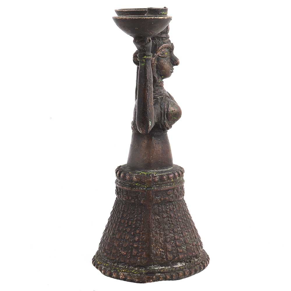 Brass Gujarat Tribal Women Holding Two Bowls Candle Holder