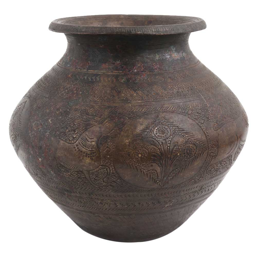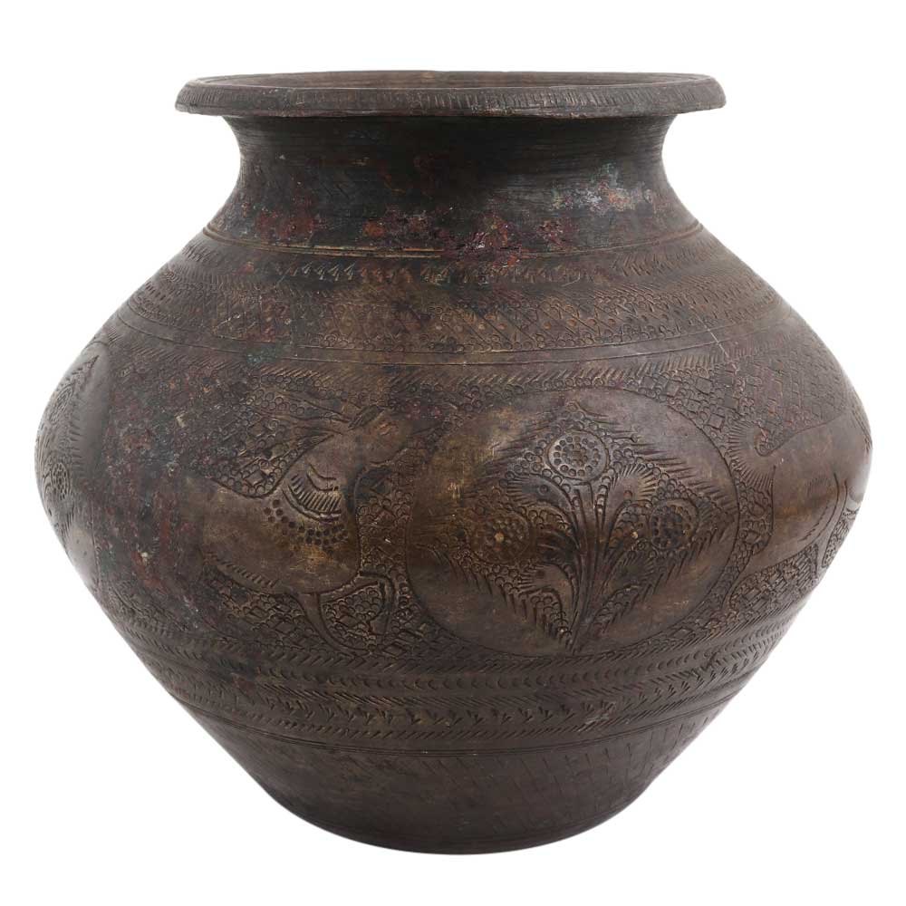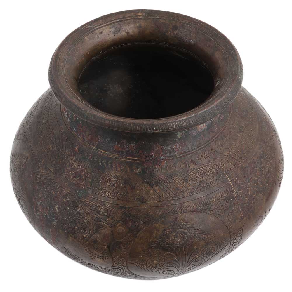 Brass Hand Carved Figurine Holy Water Pot