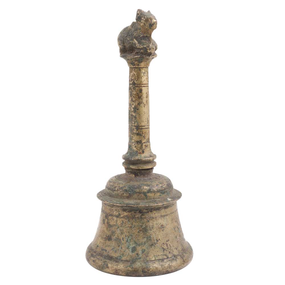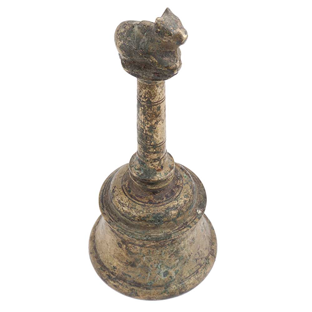 • Brass Handheld Indian Bell With Nandi Statue