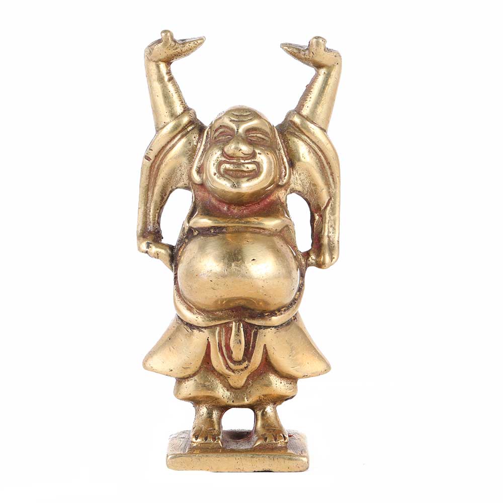 • Brass Happy Man Laughing Buddha With both hands Raised Upwards