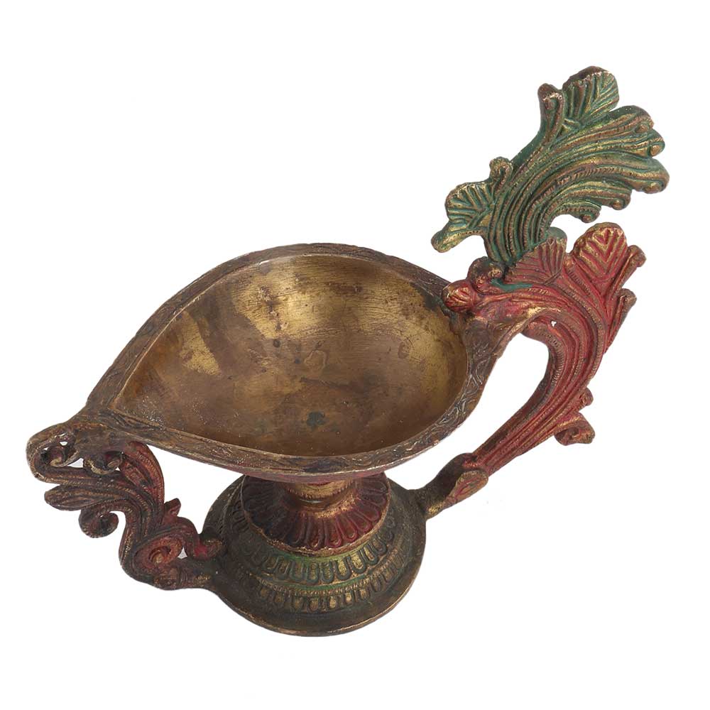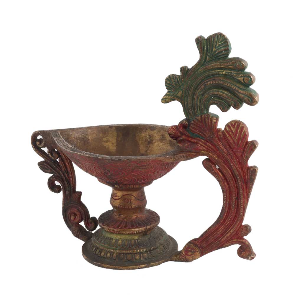 The traditional Heavy Oil Lamp with handle features natural elements, decor aspects, and shades that lend it an amazing effect. You can use it for your daily aarti or as a decorative element to your puja room. Our experts have painstakingly restored the same to its original glory. The Heavy Oil Lamp with handle makes for a perfect gift for temples and religious events. To clean it, use a dry cotton fabric instead of pitambari or similarly harsh chemicals.