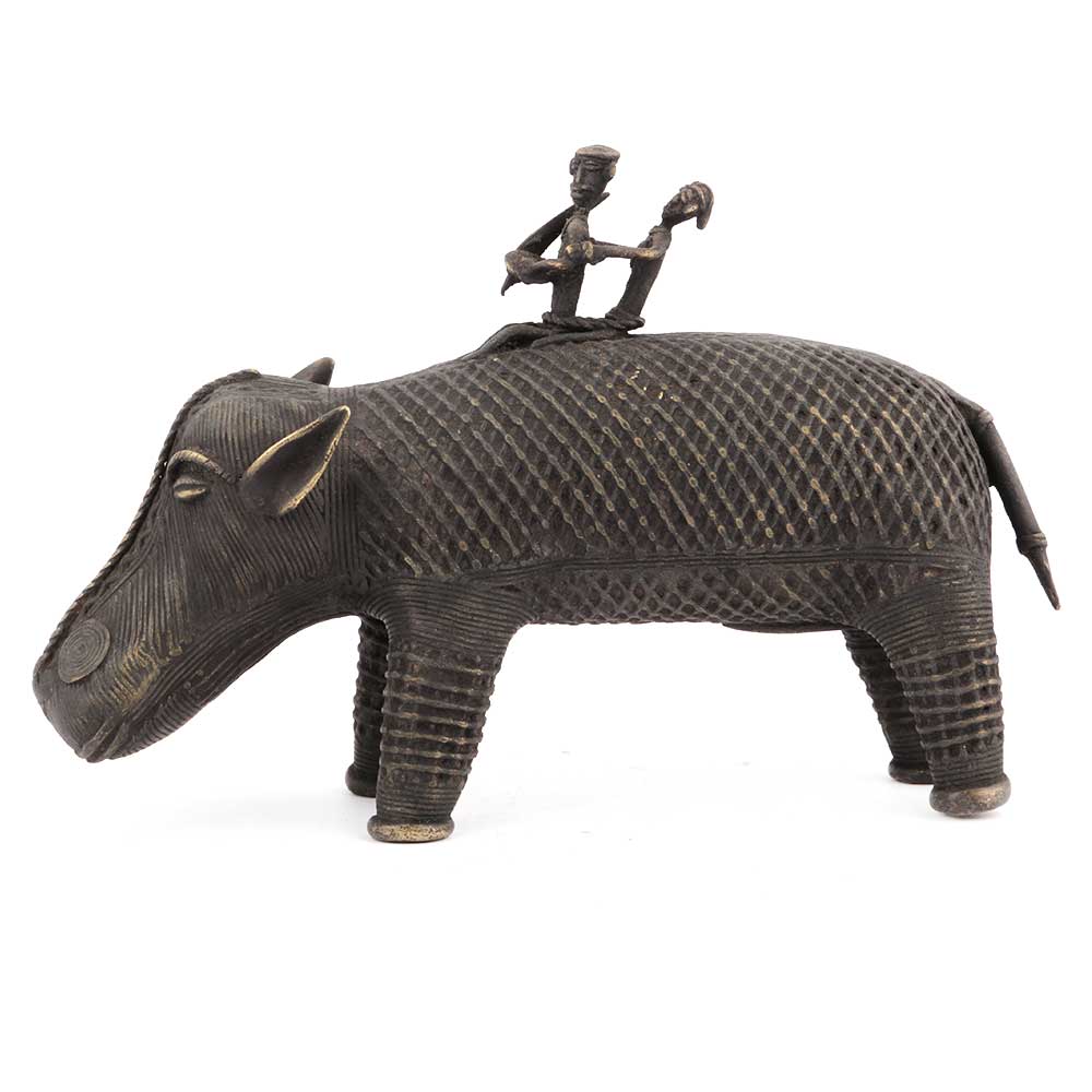 Handmade Brass Hippo with a Rider on Its Back is Made of Good Quality Brass Made by Skilled Artisans. Place It on the Display Unit or Gift It to Your Near and Dear Ones During Auspicious Occasions.