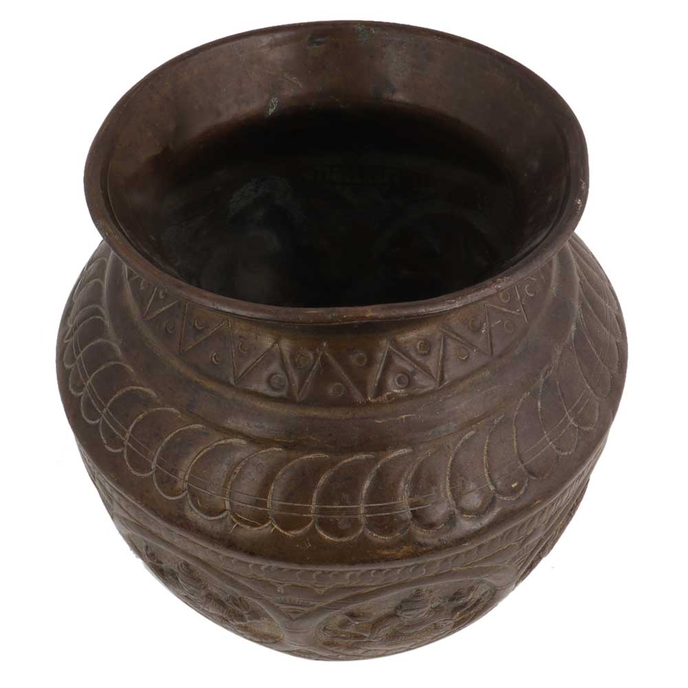 Brass Holy Water Pot Carved With God And Goddess And Traditional Design used it as planter , for flower decoration for your porch , patio and balcony near thee kitchen window, indoor and outdoor decoration. Gift it to your near and dear ones.