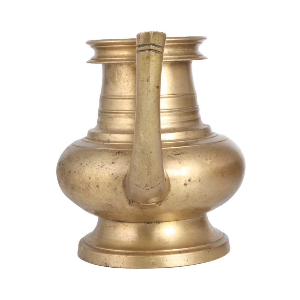 A holy water pot with a rugged appearance in an elegant brown finish to deliver a remarkable impression on the decoration. This pot has been used for centuries to offer blessing water to the faithful with its long, narrow spout. Buy this brass water pot online, handcrafted by professional Indian artisans from South India using ancient methods. Use this pot to keep holy water in your home or temple. A big water pot that will add an aesthetic look to your home and office. Place this water pot with sophisticated design in an exhibition, museum or vintage collection or give it as a gift to your loved ones on special and festive occasions.