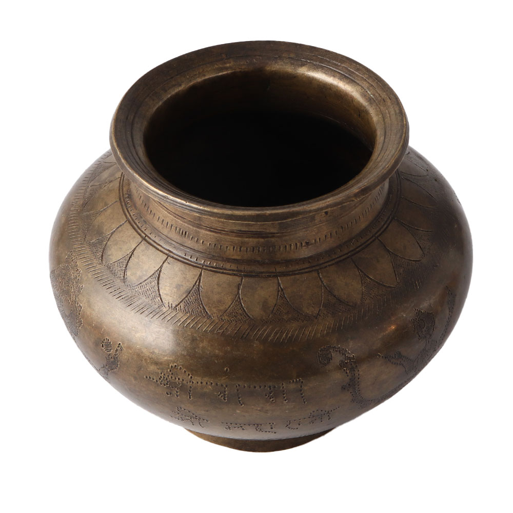 Brass Holy Water Pot with Floral Border With Text