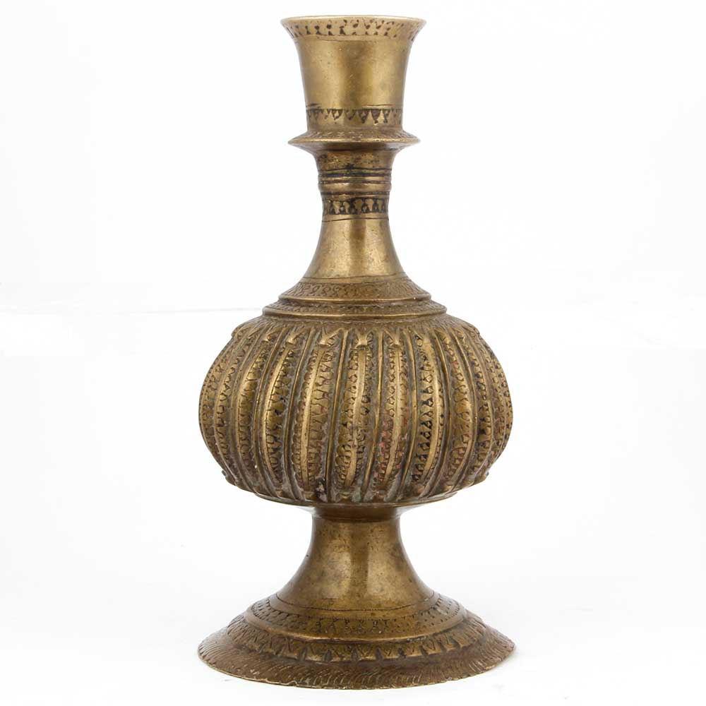 • Brass Hookah Base Floral Motif Carving Pot