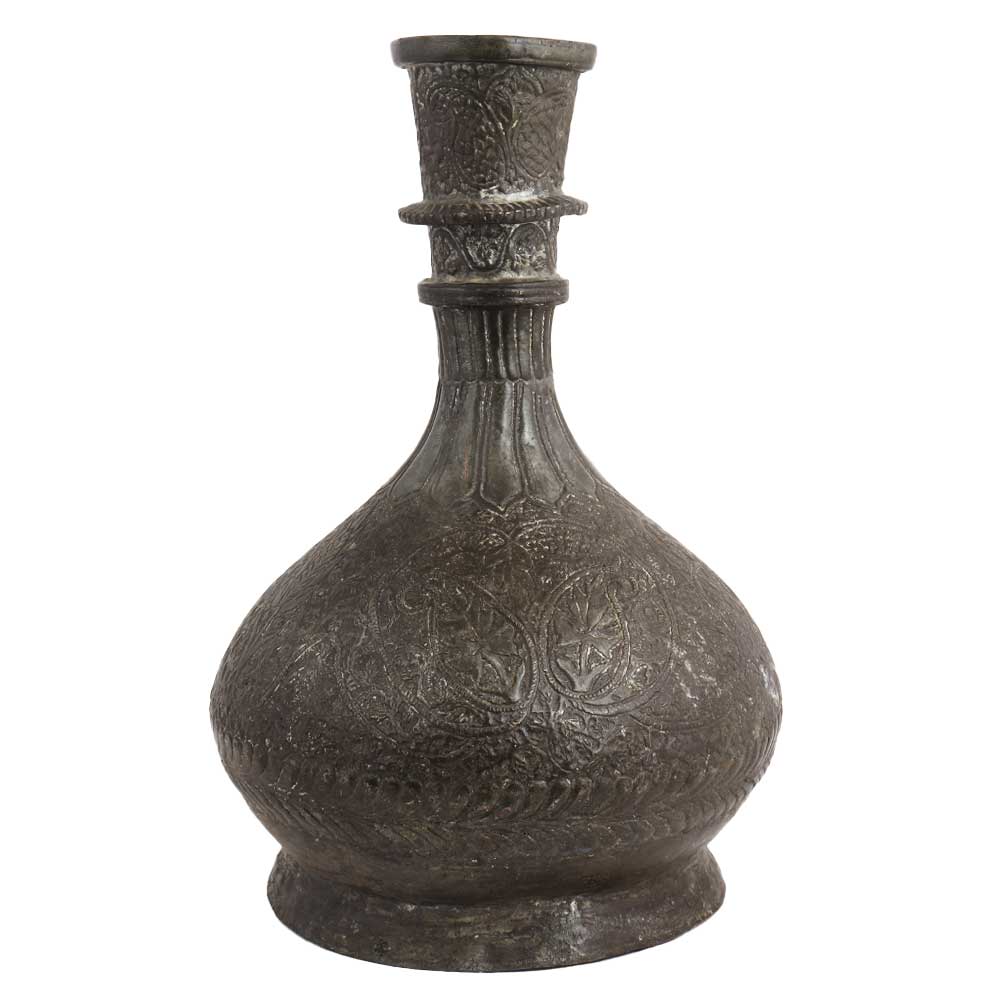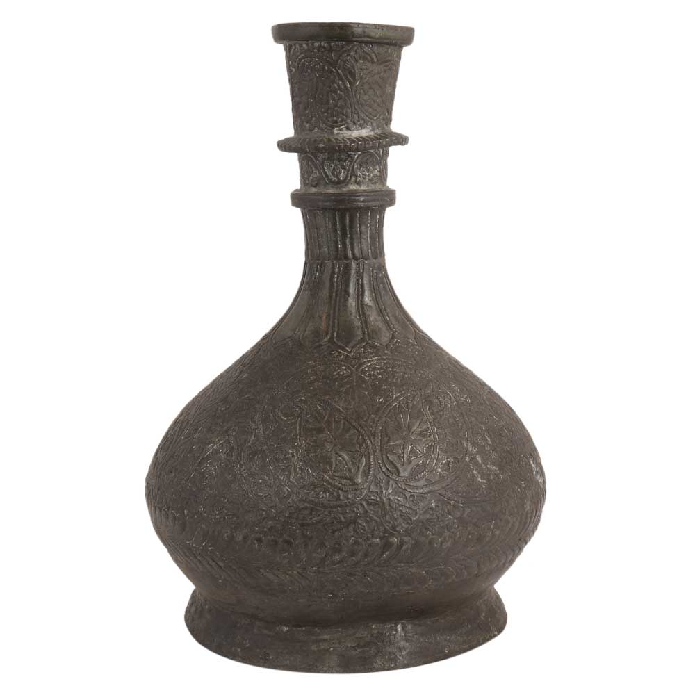 • Brass Hookah Pot with Engraved Floral Design